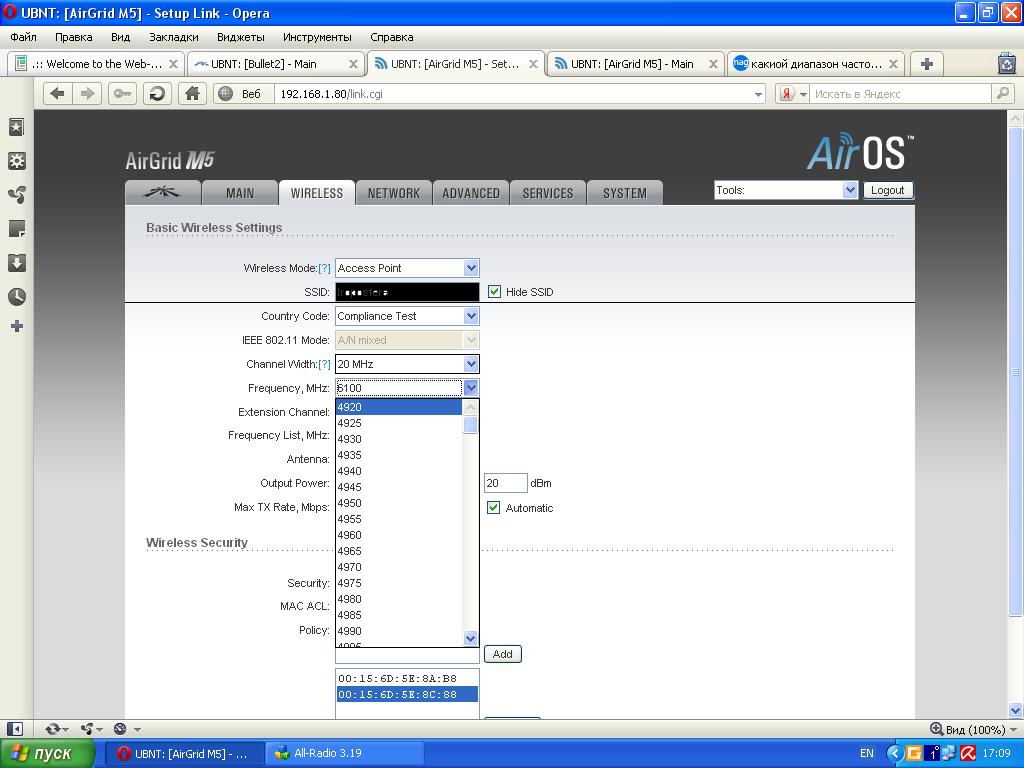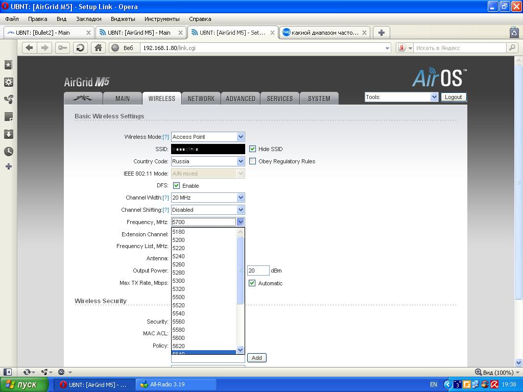 g7001 Posted February 10, 2011 Posted February 10, 2011 Собственно интересует какой диапазон частот поддерживает AirGrid M5? Был бы благодарен за скрин поддерживаемых каналов. А то железяки нет под рукой,сказали что диапазон частот отличается от Nanostation M5,но что то мало верится. Вставить ник Quote