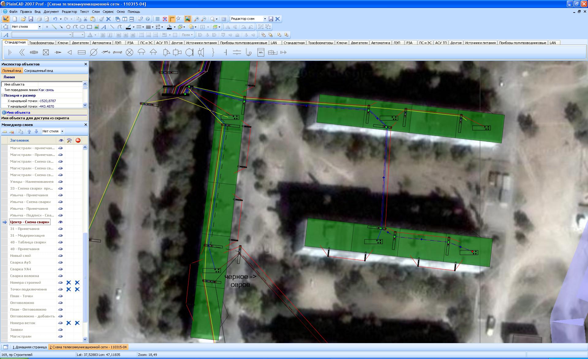 iconnect Posted March 15, 2011 Posted March 15, 2011 Используем немного адаптированную систему. Показываем сварки вплоть до волокна "прогоняя" его на всем протяжении. Очень удобно потом в обслуживании за счет быстрого поиска где волокно начинается, где заканчивается. Очень удобно анализировать кабельную емкость в нужной точке. Очень довольны. Ведем достаточно большой проект своей сети. По удобству думаю однозначно проще чем в Visio будет. Вот так выглядит схема небольшой магистральной муфты. А так двух крупных. Мое мнение - разделять документацию по сети на разные документы, такие как карта сварки муфты, схема прохождения линий, схема прохождения магистралей, карты кроса - не вариант однозначно. Не сравнить время на анализ, если есть несколько муфт, через которые необходимо проследить волокно и все карты муфт и схема магистралей в отдельных документах... или если есть одна схема в которой на муфте выделил волокно "отдалился" посмотрел на общую трассу, приблизился в начальной или конечной точке и знаешь на какой порт патч панели оно заходит, свободно оно или нет и т.д. за пару секунд. Так наверное не получится объяснить... это в "динамике" надо видеть:-) Еще единая схема позволяет работать одновременно с разными уровнями детализации переключаясь между общим видом (магистрали, узлы агрегации), промежуточным (схема пробросов между домами) и детальным (непосредственно муфты, патчи и волокна). Система позволяет накладывать подложку виде снимков, разбивать информацию по слоям, у нас вся информация еще и связана с БД. Вот небольшой пример - выделено волокно, проходящее через 2 точки сварки и показан маршрут. Ищем аналогичный софт. Задачи - учет волоконной сети в канализации и по воздуху, схемы муфт-кроссов, трассировка волокон, тех учет оборудования. Поддержка активки вообще не нужна, кроме функции учета, что стоит на узле. Про "Топологию" могу сказать - мне кажется, проект умер. Хотя задумка вроде ничего, но - сложности с импортом базовой карты, немозможность заменить базовую карту не руша базу, невозможность подложить растр... Ограничений много. И обновлений нет уже год как минимум... На форуме - одно сообщение в месяц. Я конечно понимаю, что проект некоммерческий... Но вот лично мы готовы вроде и деньги заплатить за функционал, а нет его. Смотрел тут на Dnet2 - тоже ограничений дофига. Внушает опасение то, что софт является надстройкой над Visio - не знаю, может, и безосновательно. Развитие обещают вроде. Прислали демо версию, но у меня по каким-то причинам не завелись несколько основных функций - почему, авторы сказать не смогли, вроде обещали прислать другую версию, но пока тихо. Смотрел дему КроссПро5 - вообще как-то не впечатлился, наворотов вроде много, но интерфейс совсем через жопу, ничего по сути сделать не получилось. Так что тоже в поиске находимся... Ау, софтописатели! Вам что, деньги наши не нужны? Коллеги, поделитесь, кто что еще пробовал. Excel и автокад советовать не надо, проходили... :( Вставить ник Quote