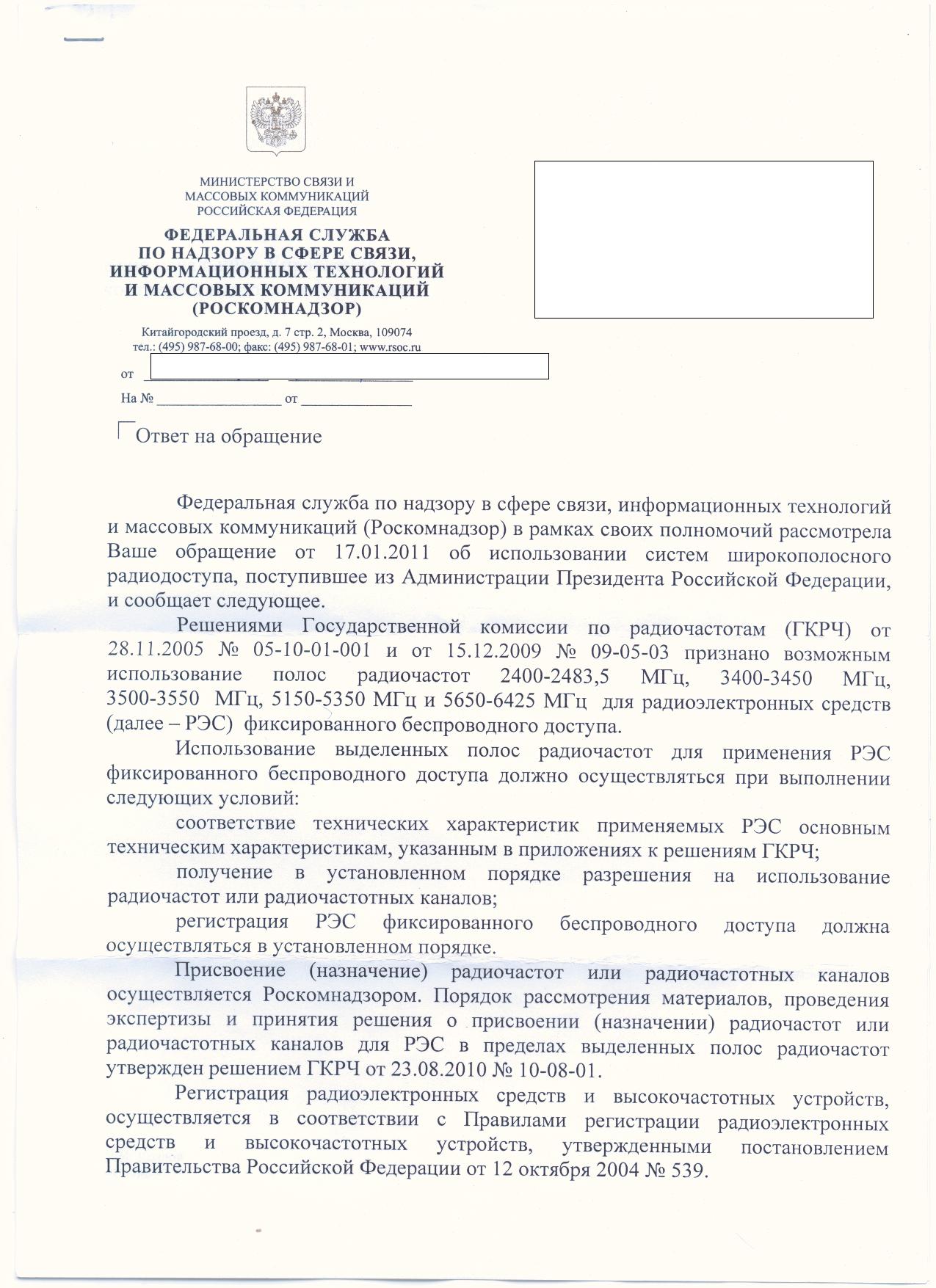 Yaten Posted March 21, 2011 Posted March 21, 2011 Вот кусок того самого магического решения ГКРЧ ГКРЧ № 10-07-02 Выделить полосы радиочастот 5150-5350 МГц и 5650-6425 МГц для применения на территории Российской Федерации РЭС фиксированного беспроводного доступа юридическими и физическими лицами без оформления отдельных решений ГКРЧ для каждого конкретного юридического или физического лица. Использование выделенных настоящим решением полос радиочастот для применения РЭС фиксированного беспроводного доступа должно осуществляться при выполнении следующих условий: - соответствие технических характеристик применяемых РЭС основным техническим характеристикам, указанным в приложении к настоящему решению ГКРЧ. - получение в установленном порядке разрешения на использование радиочастот или радиочастотных каналов на основании заключения экспертизы о возможности использования заявленных РЭС и их электромагнитной совместимости с действующими и планируемыми для использования РЭС. ГКРЧ N 2/7 от 25 сентября 2000г. Разрешить использование юридическими и физическими лицами на вторичной основе отдельных радиочастот в пределах полосы 2400-2483,5 МГц для разработки и производства в Российской Федерации, закупки за границей, продажи и приобретения на внутреннем рынке Российской Федерации и эксплуатации оборудования беспроводной передачи данных без оформления частных решений ГКРЧ для каждого конкретного заявителя. Вроде так. Т.е. не требуется получать отдельное разрешение (которое стоит мифических сумм денег) ГКРЧ для выше приведённых диапазонов. хотя с тех времён может что и поменялось. Надо уточнять диапазоны, но то, что на них не надо отдельное решение ГКРЧ это точно Вставить ник Quote