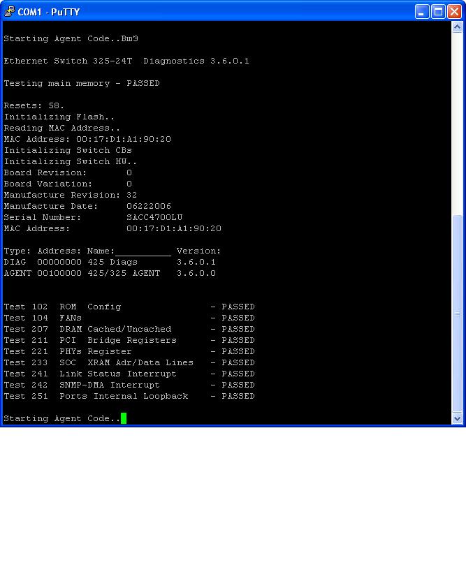 ols Posted March 21, 2011 Posted March 21, 2011 Добрый день! При включении питания зависает на сообщении: Ethernet Switch 325-24T Diagnostics 3.6.0.1 Testing main memory - PASSED Resets: 59. Initializing Flash.. Reading MAC Address.. MAC Address: 00:17:D1:A1:90:20 Initializing Switch CBs Initializing Switch HW.. Board Revision: 0 Board Variation: 0 Manufacture Revision: 32 Manufacture Date: 06222006 Serial Number: SACC4700LU MAC Address: 00:17:D1:A1:90:20 Type: Address: Name:__________ Version: DIAG 00000000 425 Diags 3.6.0.1 AGENT 00100000 425/325 AGENT 3.6.0.0 Test 102 ROM Config - PASSED Test 104 FANs - PASSED Test 207 DRAM Cached/Uncached - PASSED Test 211 PCI Bridge Registers - PASSED Test 221 PHYs Register - PASSED Test 233 SOC XRAM Adr/Data Lines - PASSED Test 241 Link Status Interrupt - PASSED Test 242 SNMP-DMA Interrupt - PASSED Test 251 Ports Internal Loopback - PASSED Starting Agent Code.. Что это значит и можно-ли самостоятельно побороть эту проблему? Может есть какой-то сброс к заводским установкам или где можно почитать? Вставить ник Quote
