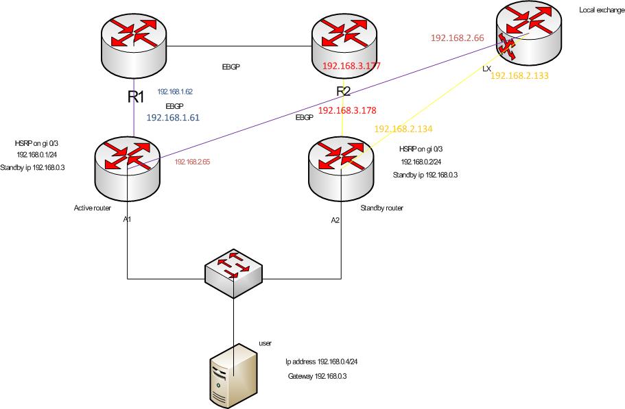 roofut Posted April 23, 2011 Author Posted April 23, 2011 я, наверное, ничего не понял, но что мешает поднять сессию между вашими граничными маршрутизаторами? и кто из них главный... Я тоже подумываю создать BGP между моими рутерами. какие пиринговые айпи мне использовать , внутринние или внешние ? будет ли мир знать что путь до моего сервака немного изменился , если аплинк от провайдера на главный рутер упадет ? главный рутер который слева. между рутрами настроен стандбай на интерфейсах которые смотрят в сторону сервака. Вставить ник Quote