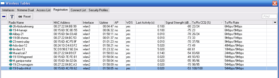 Dagforce Posted July 12, 2011 Posted July 12, 2011 Доброе время суток! Я у себя в районе устанавливаю фиви у же набрал 200 абонентов в одном поселке (170 Абонентов) на микротике 433ah там у меня клиентская антена nanostation2 устанавливаю 1ну антену на столб под ним короб в коробе камутатор оттуда витой парой до абонентов короче временно место оптики ставлю типо радио мост микротик+нанос и так на 170 абонентов у меня получилось 43 наноса тоист база видеть только 43 клиента но все норм все от души работает не жалуюсь. но вот установил базу в другом поселке точно такуюже а там проблем куча например подключил 30 абонентов все работала работала норм и бах упало вдруг все только 14 абанентов могут подключится остальные почему то не подключается с место не трогал абонентов не прибавлял уже как 2 недели, короче я в шоке я просто самоучка может что то с настройками не правильно сделал......... ПОСМОТРИТЕ НА СКРИНЫ И ПОДСКАЖИТЕ КАК ЧТО ГДЕ НЕ ПРАВИЛЬНО или дайте ссылку на подробное настройку за ранее спасибо Вставить ник Quote