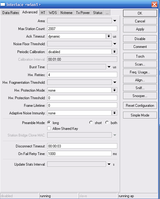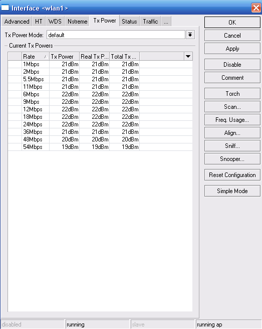 Saab95 Posted July 13, 2011 Posted July 13, 2011 На вкладке ADVANCED пункт Hw protection mode поставьте RTS/CTS. Мощности на базе укажите 18дбм на всех скоростях. Мощность на наносах уменьшите так, чтобы уровни сигналов были -65 или около того. Вставить ник Quote