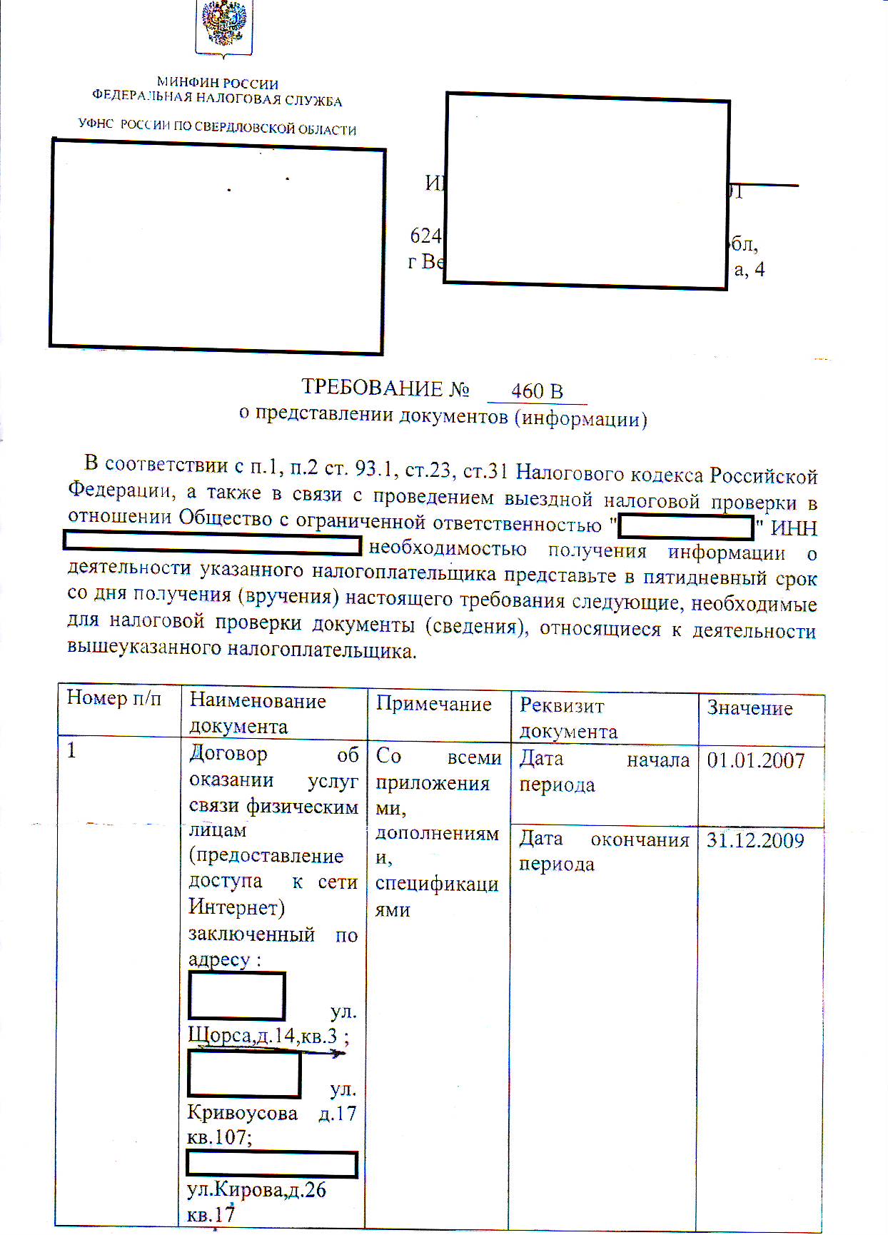 Lat Posted July 20, 2011 Posted July 20, 2011 Налоговая прислала требование о предоставлении документов. Она проводит выездную проверку в некоем ООО, НО требует договоры об оказании услуг связи физ.лицам с указанием конкретных адресов. При этом просит сведения об IP-адресе, с которого осуществлялась услуга. Ссылается на п1,п.2 ст.91.3, ст.23 и ст.31 НК РФ. Возникло много вопросов. 1.В требовании указано, что ФНС может запрашивать информацию у иных контрагентов проверяемого-это понятно, но причем тут ФИЗ.ЛИЦА? 2.Далее -документы, которые вправе истребовать налоговые органы: - документы, служащие основанием для исчисления и уплаты (удержания и перечисления) налогов и сборов. Они должны быть составлены по утвержденным (унифицированным) формам и (или) оформлены в электронном виде по установленным форматам; - документы, подтверждающие правильность исчисления и своевременность уплаты (удержания и перечисления) налогов и сборов. При чем тут договора на оказание услуг и сведения об IP-адресе? 3. Также не увидел операторов связи в перечне организаций, обязанных что-либо ФНС (ст.85 НК). 4. Нет права требовать договора и сведения об IP-адресе в ст.31 НК РФ. Кто сталкивался с подобными ситуациями и как отвечали ФНС? Вставить ник Quote