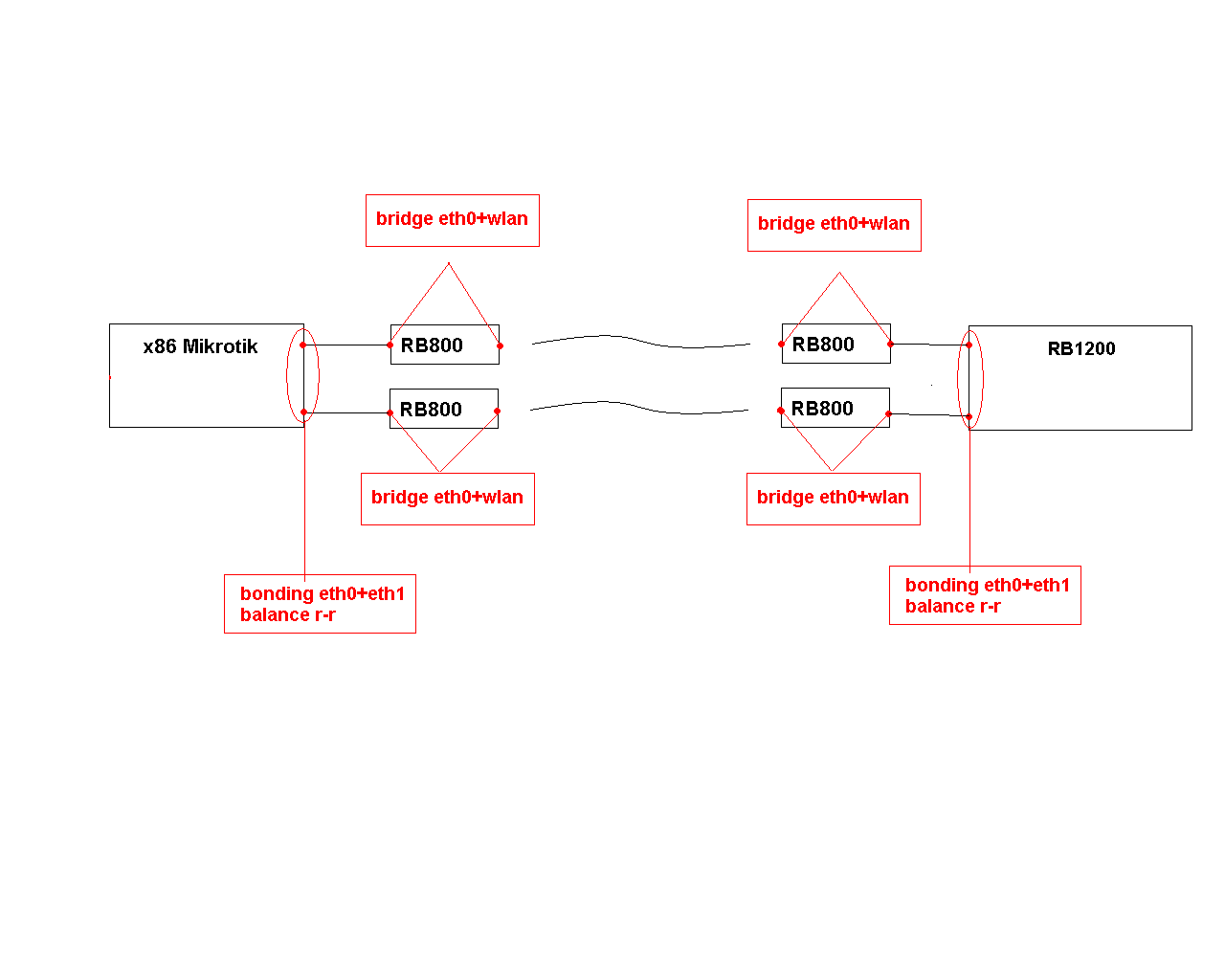 Saab95 Posted August 4, 2011 Posted August 4, 2011 Такая агрегация будет работать только тогда, когда скорости и задержка через оба радиоканала одинаковые и нет потерь. На практике такое получается редко, в итоге потратите время зря и не получите нормальных результатов. Запустите лучше кольцо на OSPF, оно работает на 3-м уровне и на задержки и разницу в скоростях ему побоку. Только понадобятся еще 2 микротика с обоих сторон, к которым будут подключены 2 радиолинка и "выходной" кабель. Вставить ник Quote