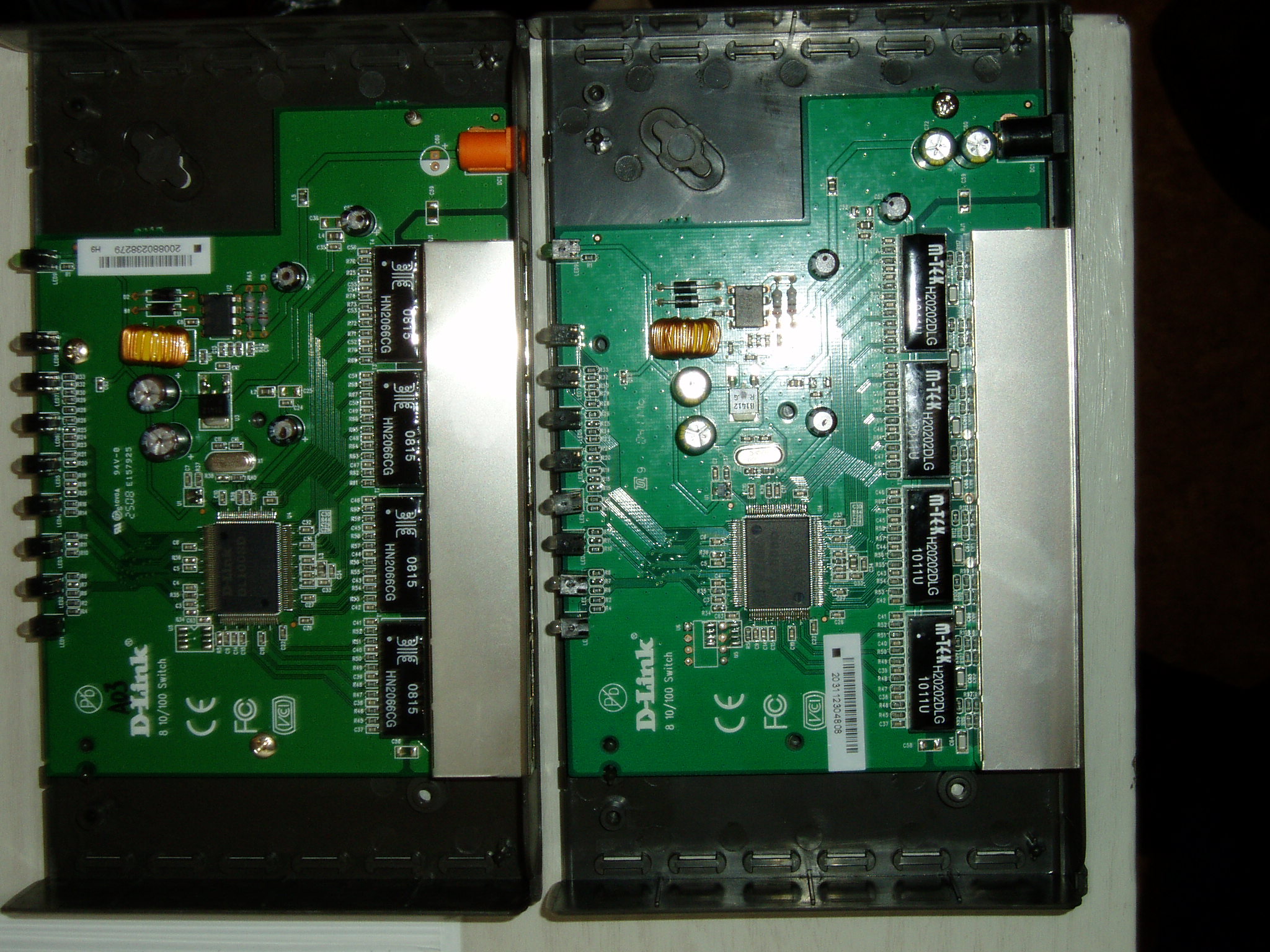 Gunner Posted August 9, 2011 Posted August 9, 2011 Купили в замен сгоревшим обычным 1008 новые с приставкой про. Цитата с сайта. Новая серия отличается улучшенными аппаратными характеристиками: все порты коммутаторов обеспечивают повышенную устойчивость к помехам и статическому напряжению в СКС или при нестабильном напряжении питания, что позволяет устанавливать коммутаторы серии /PRO на уровне доступа в сетях провайдеров ETTH и выносных сегментах сети компании. ради любопытства вскрыл слева обычная с права про заметна дополнительная обвязка у портов до трансформаторов и 2 кондера на входе по питанию. В обвязке 3 резистора 1 кондер как я понял. Теперь вопрос от чего защитит такая защита. Вставить ник Quote
