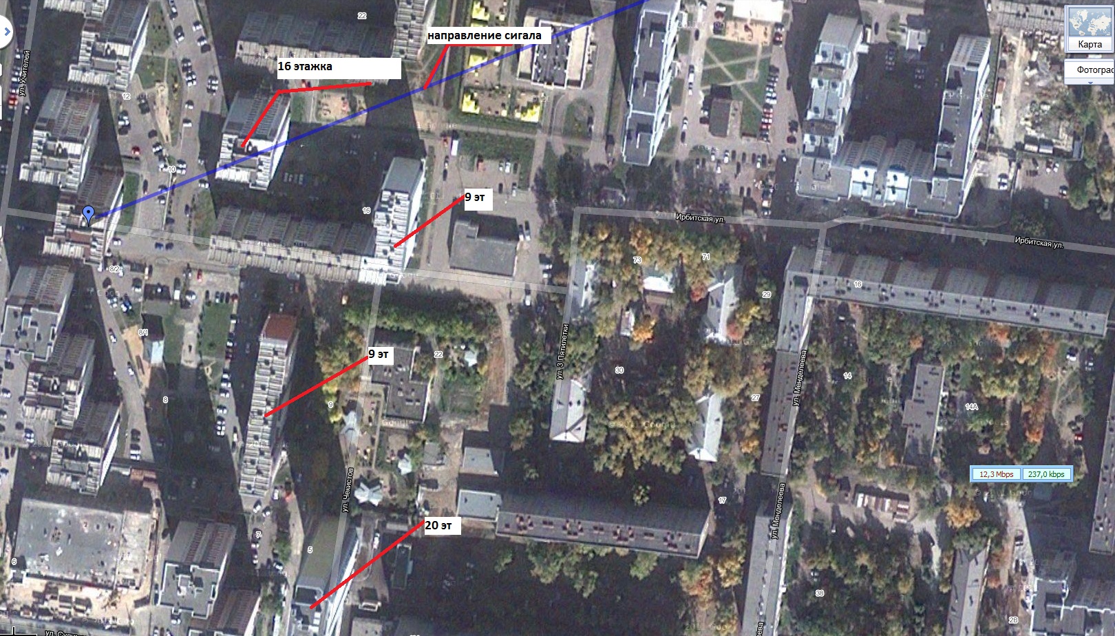 tartila Posted August 19, 2011 Posted August 19, 2011 Парадокс, скорость с новой прошивкой была 14 мегабит ccq 96% со старой немного упала 12,5 магабит, зато ccq 100% ! Исходя из предоставленной карты местности (хотя и не полной) могу посоветовать Вам сдвинуть антенну на 8/2 к краю дома и посмотреть, попадете ли Вы в просвет м/у 16 этажкой и 9 этажкой. Вполне имхо есть шанс. Вставить ник Quote