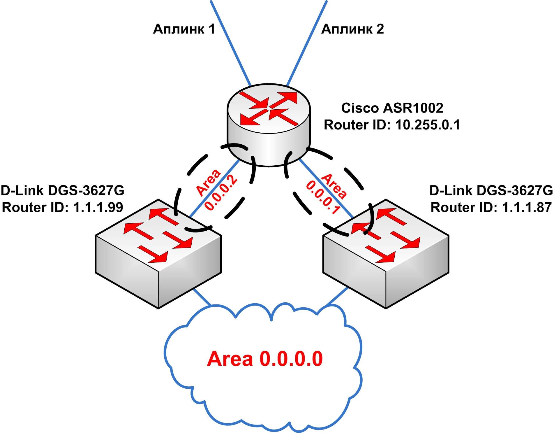 Zaqwr Posted August 23, 2011 Posted August 23, 2011 а так ? create ospf area 0.0.0.1 type normal и вообще на DGS'ах как сконфигурено? Вставить ник Quote