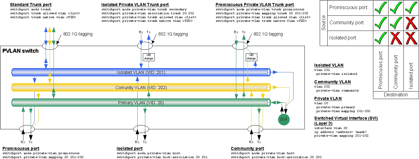 ilili Posted September 5, 2011 Author Posted September 5, 2011 (edited) лучше читать доку к конкретно вашему устройству. http://www.cisco.com...de/swpvlan.html Да не прокатит это. Уже пробовал. Комьюнити влан нельзя сделать на транковом порту, только на порту хоста. Т.е. согласно картинке, влан 100 между коммутаторами, но (!) влан 202 м/д свитчами передать уже не получается. Может кто как по-другому реализовывает? Edited September 5, 2011 by ilili Вставить ник Quote