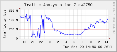 YuryD Posted September 21, 2011 Author Posted September 21, 2011 Насколько помню, 32-битных счетчиков перестает хватать где-то на 120 мегабитах при расхожем интервале опроса в 5 минут. У автора темы, все же большую часть суток трафика больше, то есть либо он опрашивает часто, либо счетчики - 64. mrtg+rrdtool+router2cgi, Интервал 1 минута. nnn:Public@1.1.1.1:::::2 - чего-то не берется... Вставить ник Quote