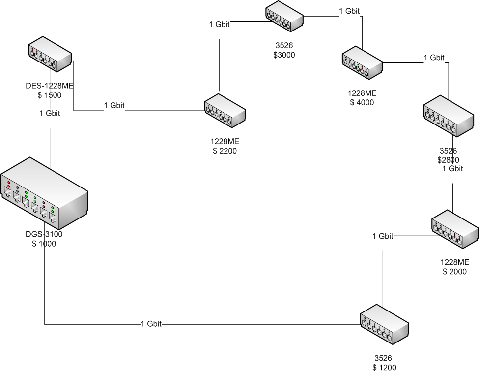 CLI Posted October 5, 2011 Posted October 5, 2011 А как в таком случае полетит трафик? Как Я понимаю через тот линк у кого окажется выше приоритет или как? Вы уж сильно не пинайте с сетями работаю пару лет,делал всё кроме колец))) У рута все порты всегда FORWARD, дерево рассчетается относительно рута на основе стоимости пути до оного. Поскольку кольцо полностью гигабитное, то скорей всего заблокируется (то есть логически порвется кольцо в этом месте)один из портов на 1228 (четвертый от 3100) Скорей всего наибольший по номеру порт заблокируется. Проверь :) Вставить ник Quote
