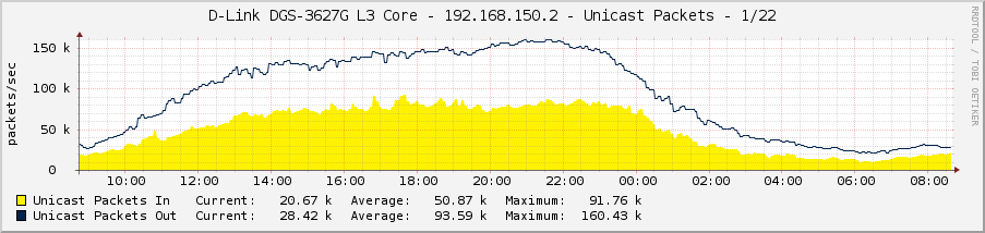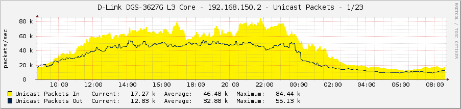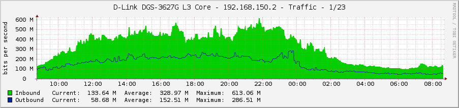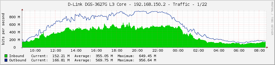 Graaf Posted November 29, 2011 Posted November 29, 2011 Коммутатор: Device Type : DGS-3627G Gigabit Ethernet Switch Boot PROM Version : Build 1.10-B09 Firmware Version : Build 2.80.B35 Hardware Version : 1A1G Link Aggregation Algorithm = IP-Source-Dest Group ID : 2 Type : LACP Master Port : 22 Member Port : 22-24 Active Port : 22-24 Status : Enabled Flooding Port : 22 Исходящий трафик на мастер-порту упирается в 1Гбит/с, на остальных портах не превышает 250-300 Мбит/с. Изменение алгоритма распределения нагрузки ничего не даёт (пробовал ещё MAC Src&Dst, IP Src). Графики загрузки: С другой стороны линка стоит DGS-3100-24, включен алгоритм L2/L3, от него всё нормально распределяется (видно на графиках) Кто-нибудь с таким сталкивался? На форуме длинка что-то не хотят отвечать. Вставить ник Quote