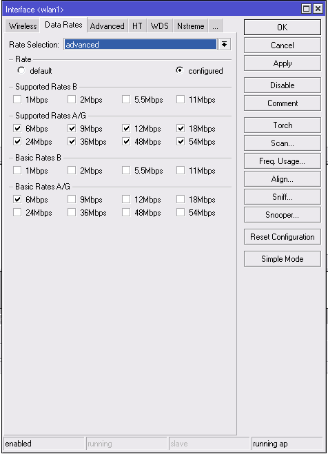 server801 Posted December 11, 2011 Posted December 11, 2011 Вот про последнее Так же вы забыли привести вкладку Data Rates. На ней на базе нужно поснимать галочки с не используемых скоростей. Если используете только A, тогда скорости MCS должны быть отключены (галочки сняты), если используете только N, тогда все галочки со скоростей A должны быть сняты. Вы показали бы в картинках! Тогда были бы еще больше признательней. Спасибо! Вставить ник Quote