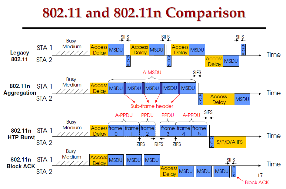 Saab95 Posted January 8, 2012 Posted January 8, 2012 Я имел в виду не то что там значения отображаются, а то, что агрегацию отключить можно. Даже если вы там нули везде поставите, агрегация все равно не отключится. Возможно просто из A-MPDU в A-MSDU переключится. А аппаратную агрегацию A-PPDU вообще отключить нельзя. Максимально для каждого клиента можно передать только 8к байт от всего размера суперфрейма. Следовательно на линке точка-точка нет смысла устанавливать значения больше. При использовании полосы 40мгц, коллизии проверяются только по основной полосе (20мгц), поэтому при большом количестве клиентов и сложных радиоусловиях, в полосе 40мгц сильнее деградирует пропускная способность при наличии помех, чем в полосе 20мгц. Вставить ник Quote