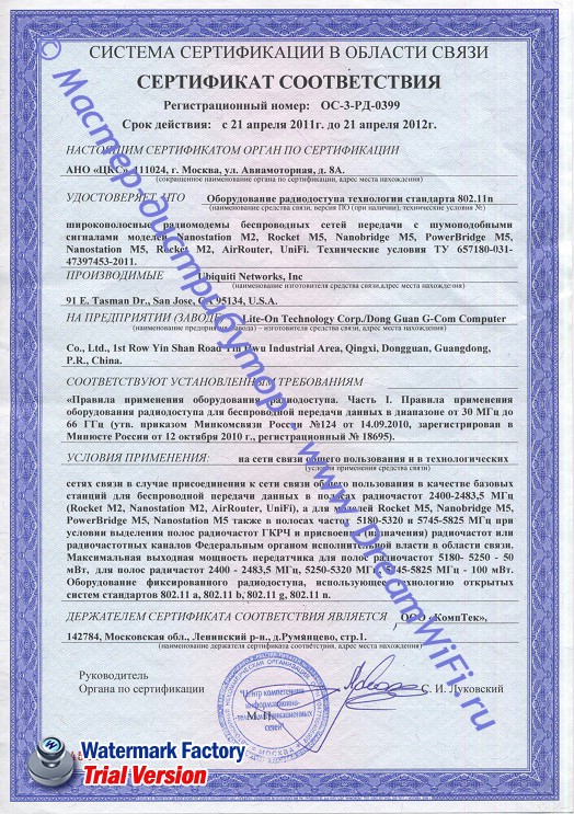 sbyshek Posted January 14, 2012 Posted January 14, 2012 (edited) Выкладываем копии сертификатов на РЭС Первым образом необходима копия сертификата соответствия на NanoBridge M5 и русский и украинский___ ( можно работающие ссылки ) Выкладываем по мере поступления запросов. Пож.................... Edited January 14, 2012 by sbyshek Вставить ник Quote