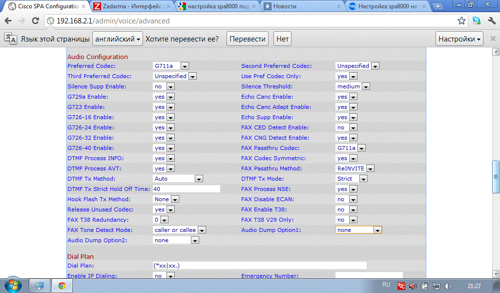 DIZZID Posted January 24, 2012 Posted January 24, 2012 (edited) Зарегестривовался на задарма.... получил там 4 номера... факсы через них можно гонять и цены норм... купил железяку умную,linksys spa8000, и поход она меня скоро в могилу заведёт... звонки проходят,факсы не отправляет.... но принять может... они работаю без t38,уже выключил не помогло.... если кто знает проблему - помогите, неделю за ней... голова скоро взорвётся.... Могу в скринах прислать настройки.... и на всякий случай подскажите все значения,которые надо выключить,что бы т38 не работало... Edited January 24, 2012 by DIZZID Вставить ник Quote