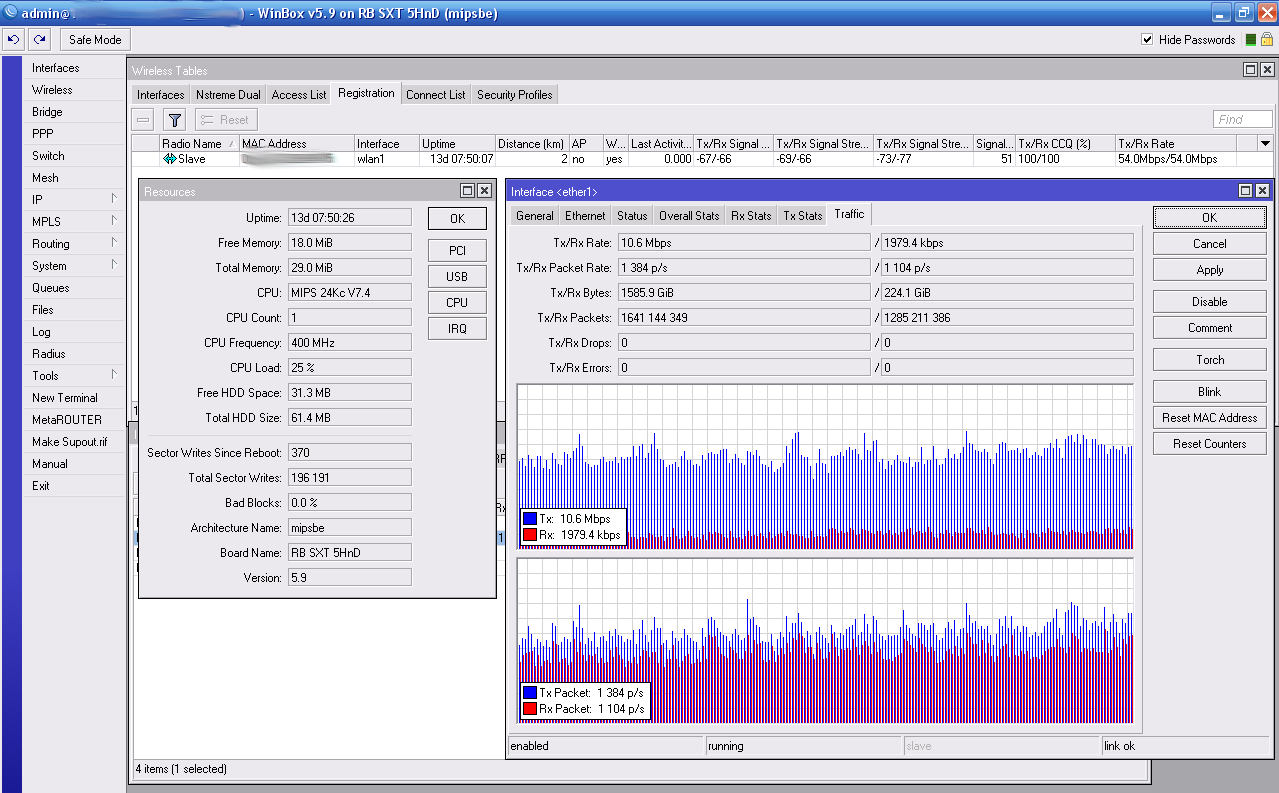 sokrat Posted January 25, 2012 Posted January 25, 2012 Вы не правы. Выходят новые версии ОС - приносят вкусные плюшки. Если там есть интересные нововведения - почему бы не поставить их в работу? На данный момент оптимальная прошивка это 5.9, по сравнению с предыдущими в них намного стабильнее работает радиочасть. На многих проблемных линках ушли проблемы, при использовании этой прошивки. Это заметно и на протоколе NV2, и на 802.11 где в качестве клиентов выступают наносы или клиентские ноутбуки. Поэтому если у вас более ранняя версия, есть смысл обновиться до 5.9. В версии 5.10, 5.11, 5.12 нет никаких нововведений по радио. Пробовал и 5.12 - никаких проблем не обнаружено, стабильно работает. Но прошивать ею клиентские устройства пока рано, надо подождать следующих версий. Сейчас у меня везде 5.9 на базах и на клиентах, в одном месте прошита база 5.12 и все клиенты 5.12. Прошло всего 2 дня. О каких результах можно спрашивать. Вставить ник Quote