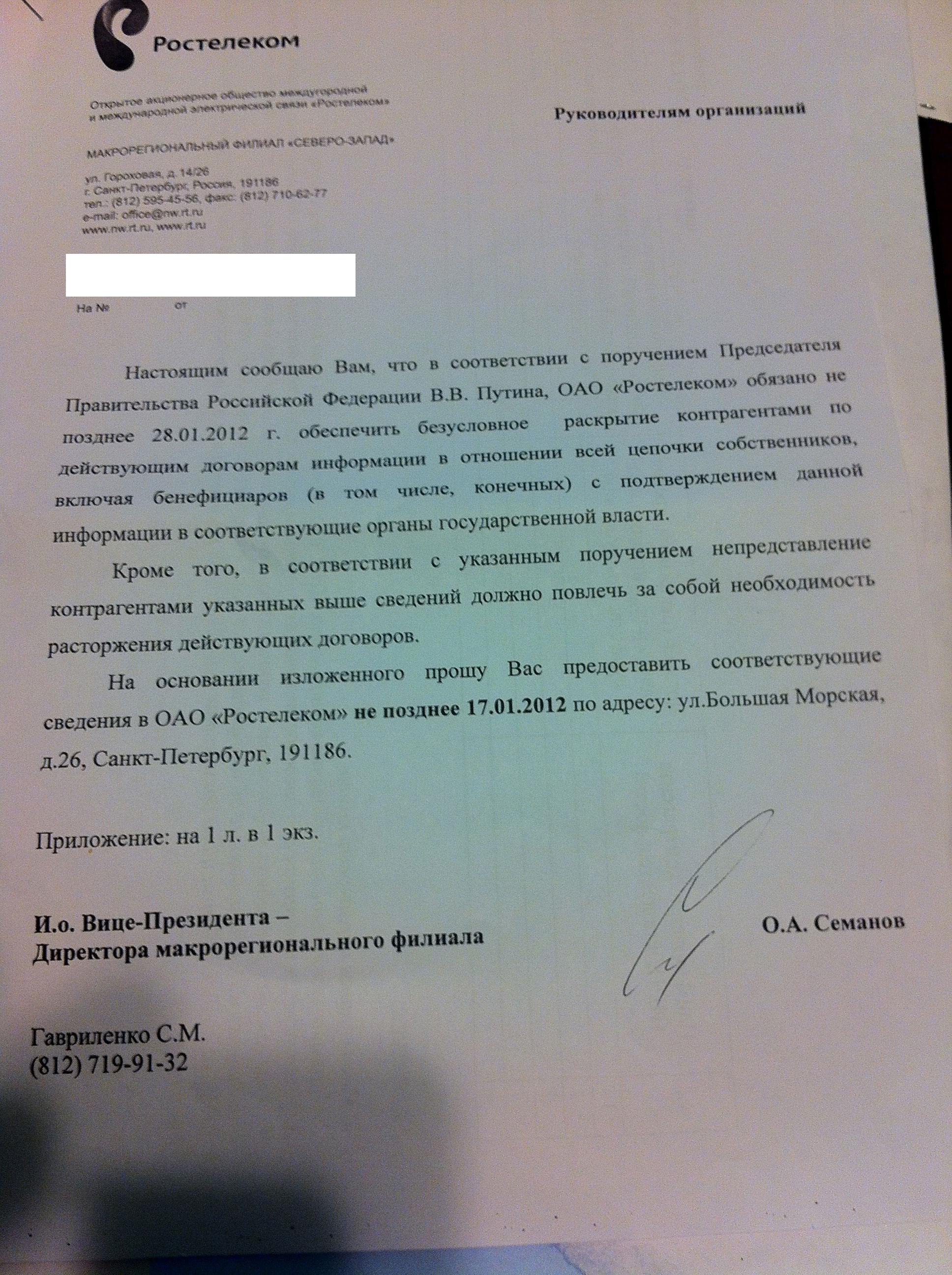 a.sergey Posted January 27, 2012 Posted January 27, 2012 Пришла бумага из Ростелекома... Пришла на почту 24.01 попало в офис 26.01, подскажите как реагировать? может кому-нибудь еще такое приходило? Вставить ник Quote