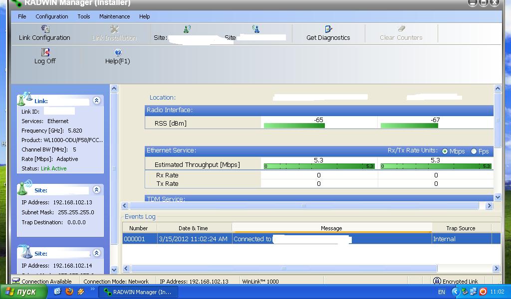 mgordeev Posted March 15, 2012 Posted March 15, 2012 Добрый день, всем. Есть проблема, стоят 2 точки RadWin WinLink 1000 настроены point-to-point. В течении для работает всё прекрасно, без прерываний , уровни хорошие, линк поднимается по полной..( см. файл во вложении) а ближе к вечеру часам к 9 синхронизация между точками пропадает и что бы не делал нет её.., потом утром опять часов в 10-11 восстанавливается и опять день работает без сбоев. В чем может быть проблема??? заранее благодарю. жду ответов. Вставить ник Quote