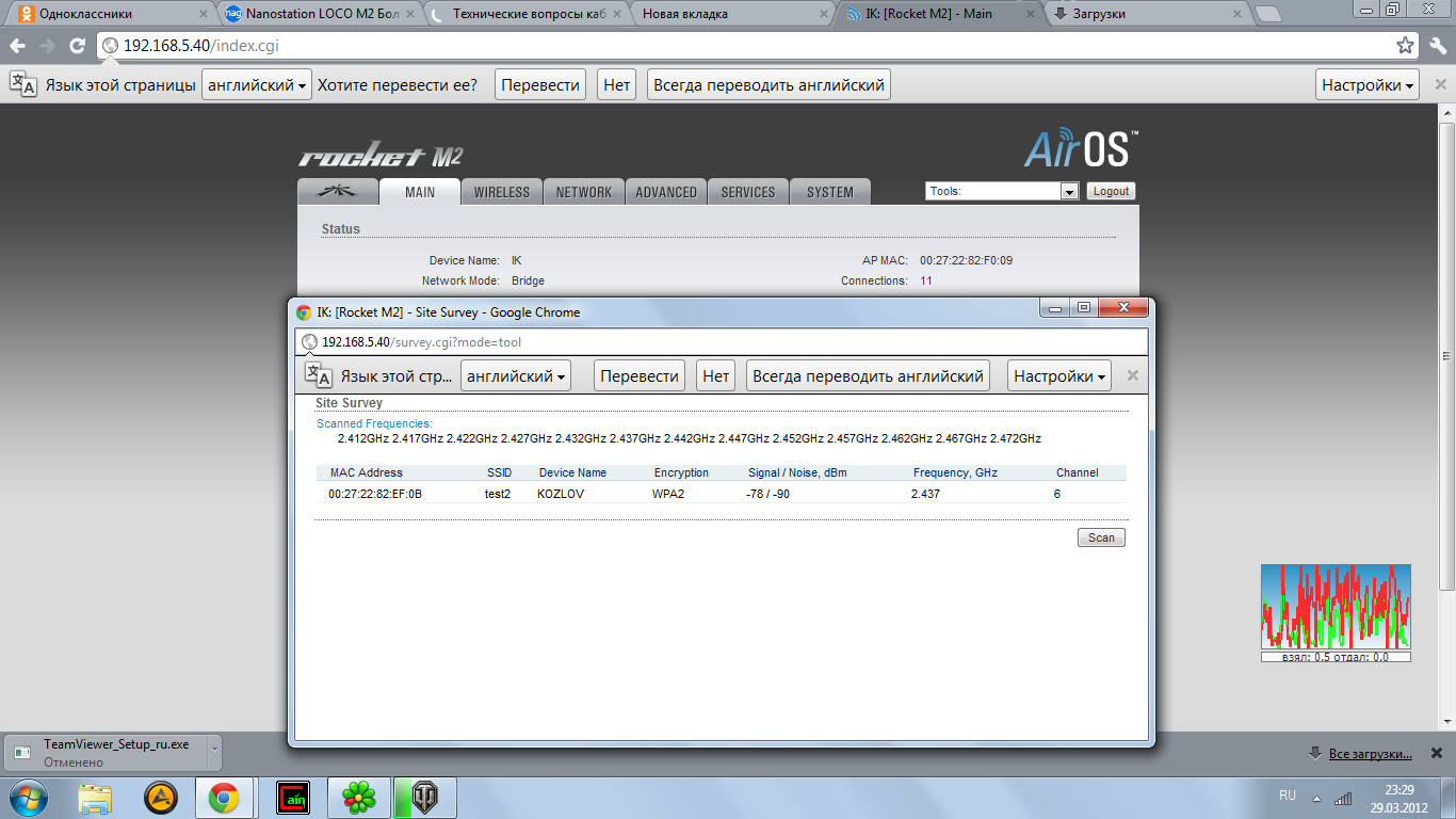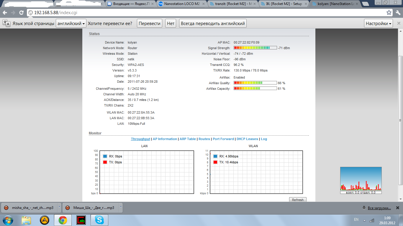 kashsash Posted March 28, 2012 Author Posted March 28, 2012 (edited) Уровень сигнала - 68 CCQ - 99 дальность 150 м. Мощность на базе 14 на клиенте 5 шейпер выключен, максимальная скорость на прием 4 на отдачу 19 модуляции 78/130 Edited March 28, 2012 by kashsash Вставить ник Quote