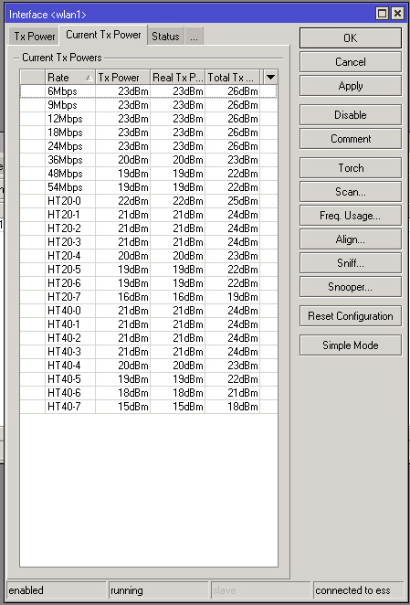 Барагоз Posted March 31, 2012 Author Posted March 31, 2012 1. С клиента сканировать не могу, доступ только по радиоканалу, при сканировании соединение теряется. С базы сканировал при установке, везде было -116-117. Перепроверю попозже ночью, когда не будет нагрузки на линк. С клиента тоже сканировал, я уже писал, он в скане не видит даже свою базу, так что результатам этим я не берусь доверять. 2, 3. Видимость прямая, сведены точно, помех нет. Электропровода если только..)) И в заключении всего покажите скрин статуса с клиента, где показаны все сигналы. Вот это не очень понял. Имеете в виду результаты скана? Обычное окно статуса с клиента вот: Вставить ник Quote