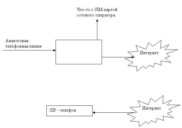 Saab95 Posted March 30, 2012 Posted March 30, 2012 Есть аналоговая телефонная линия. Требуется устройство для осуществления следующего: Нужно прокинуть ее до IP-телефона, который находится в любом месте интернета так, чтобы при поступлении звонка по ней он переводился на этот аппарат. Если поднять трубку на аппарате - автоматически раздавался гудок и можно было напрямую набирать номер. Так же если есть возможность установить SIM карту и делать переадресацию на номер мобильного телефона. Короче сделать такой хитрый удлинитель. Какие устройства можно использовать для этой цели из современных и не глючных? Вот как-то так: Вставить ник Quote