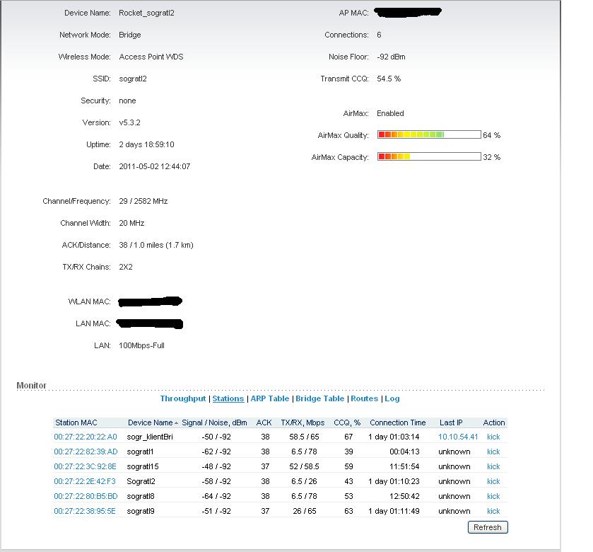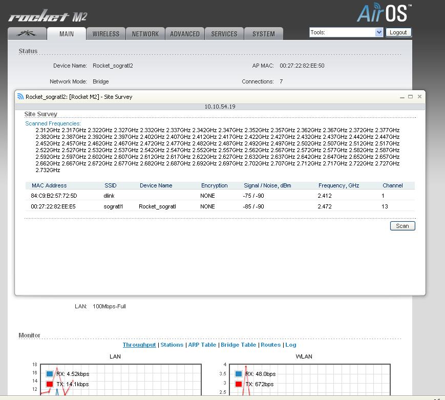 Omax Posted April 2, 2012 Posted April 2, 2012 Народ стоят 2 рокета М2 с антенами 90 градусов. С первым все хорошо, нормальные уровни сигналов соответствую нормальным уровням ССq и все работает в общем то путем. Со вторым чудеса приведенные на картинках, уровни сигналов хорошие CCQ ужасный и работает тоже плохо. Находятся на возвышенности, помех друг не создают разнесены... По скрину видно что есть еще какой то длинк, на первой частоте и не мешает. Меня интересует собственно именно вопрос по поводу хороших сигналов и плохом CCQ, что может быть не так. Вставить ник Quote