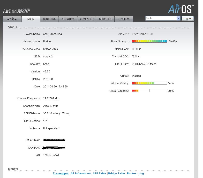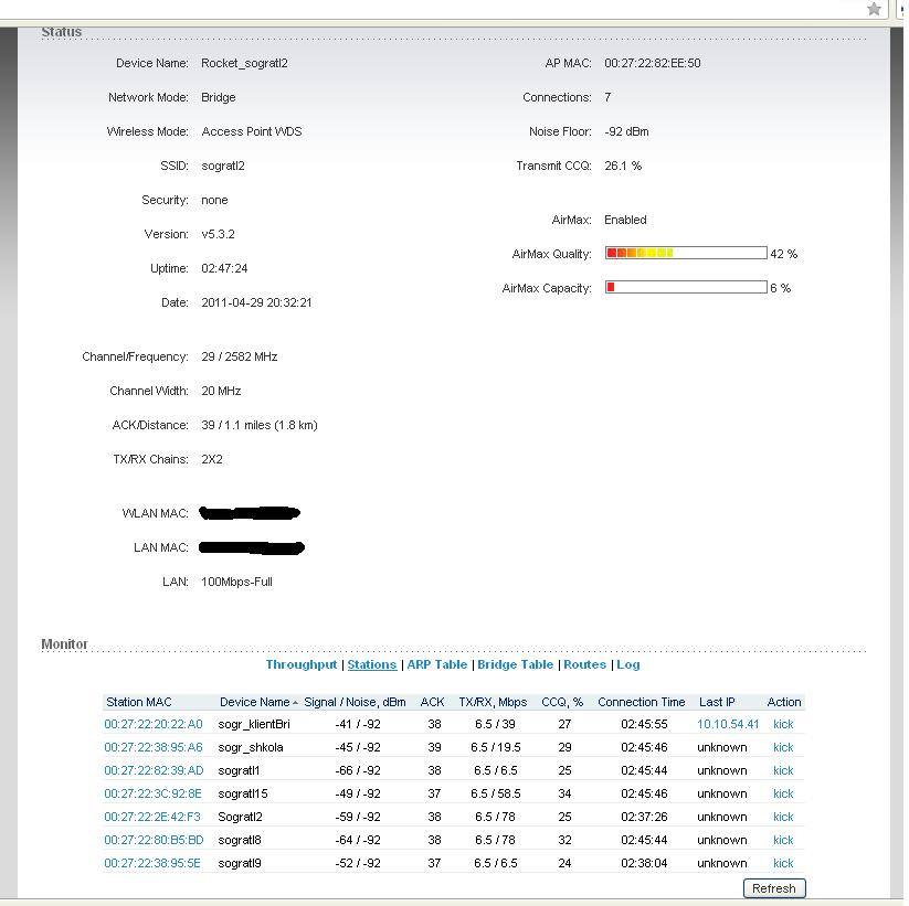 Omax Posted April 5, 2012 Author Posted April 5, 2012 Теперь вам надо мощность на клиентских точках убавить. Выкрутил на клиентской AirGrid 17x24 на минимум 9 dbi, уровень сигнала особо не уменьшился, слишком маленькое расстояние видимо. Omax - а вам не кажется что антенна слишком сильно наклонена вниз? Пробовали ее наклонять наблюдая на показания сигналов клиентов? Выезжать на место просто далековато, сейчас пытаюсь сделать все возможное на расстоянии... А так Хутор находится у подножья холма,разница высот метров 300, фотки были но найти не смог... При выезде на место обязательно попробую вашу теорию... Вставить ник Quote