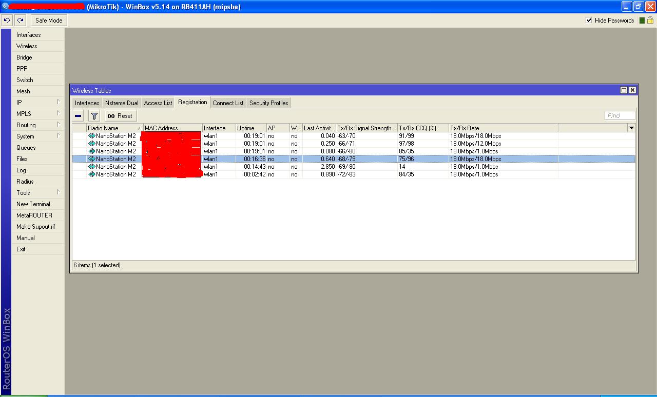 SSD Posted April 18, 2012 Posted April 18, 2012 Всем здра***те. Собственно сразу по теме. Поставил Базовую станцию (RB411AH+R52H+секторка антенна ) В роли клиентских точек использую Наносы М2. настройки БС: R name="wlan1" mtu=1500 mac-address=00:0C:42: arp=enabled interface-type=Atheros AR5413 mode=ap-bridge ssid="моя БС" frequency=2462 band=2ghz-onlyg channel-width=20mhz scan-list=default wireless-protocol=802.11 antenna-mode=ant-a wds-mode=disabled wds-default-bridge=none wds-ignore-ssid=no bridge-mode=enabled default-authentication=no default-forwarding=yes default-ap-tx-limit=0 default-client-tx-limit=0 hide-ssid=no security-profile=default compression=no на скрине показаны клиенты. в общем получилась каша какая-то :( . Пинги скачут от 1-10 до 600-900, прокачка думаю не проходит по полной. подскажите над чем тупанул, что-то кажеться не донастроил, но вот что пока не могу сообразить. понемногу пробую менять настройки, но улучшения пока не вижу. по настройкам ничего особенного, нету скорость БС в адванседе галочки выставленны до 18, мощность по дефолту. на клиентах тоже ничего особенного не выставлял.Проброшен VLAN для главного маршрутизатора.БС настроена сквозной. За ранее спасибо, жду советов. Клиент с ССК 14 ни на какие мысли не наводит? :) Вставить ник Quote