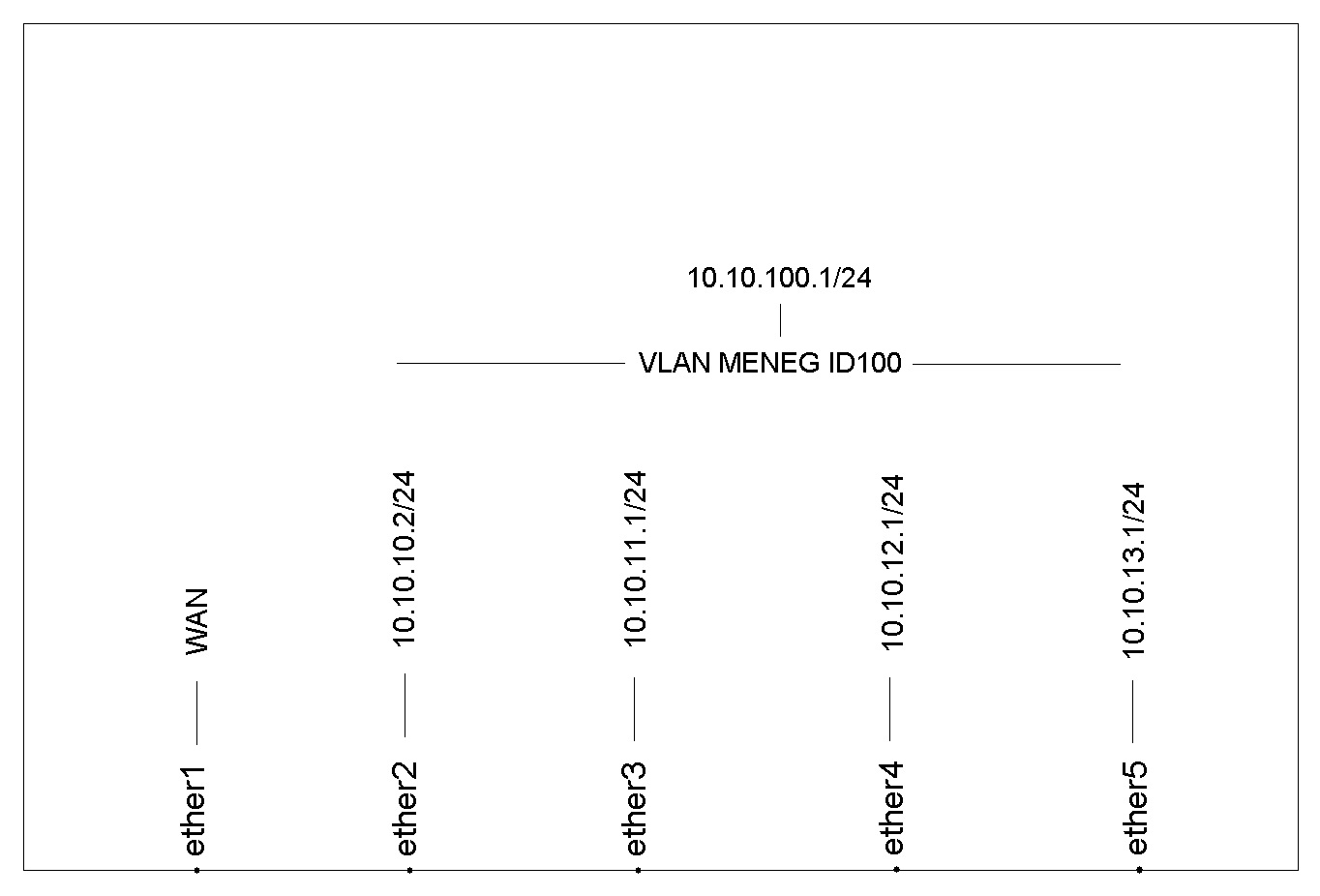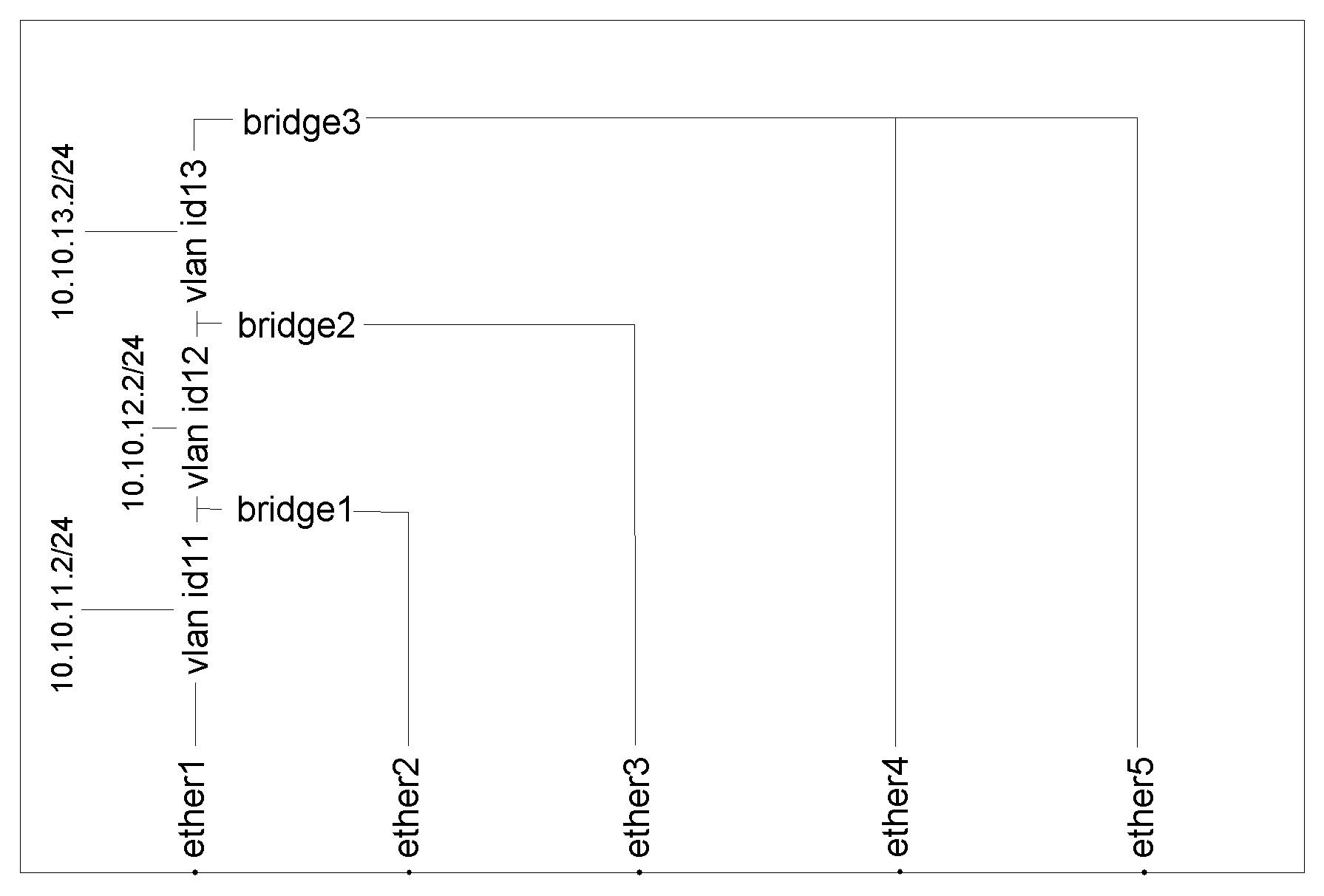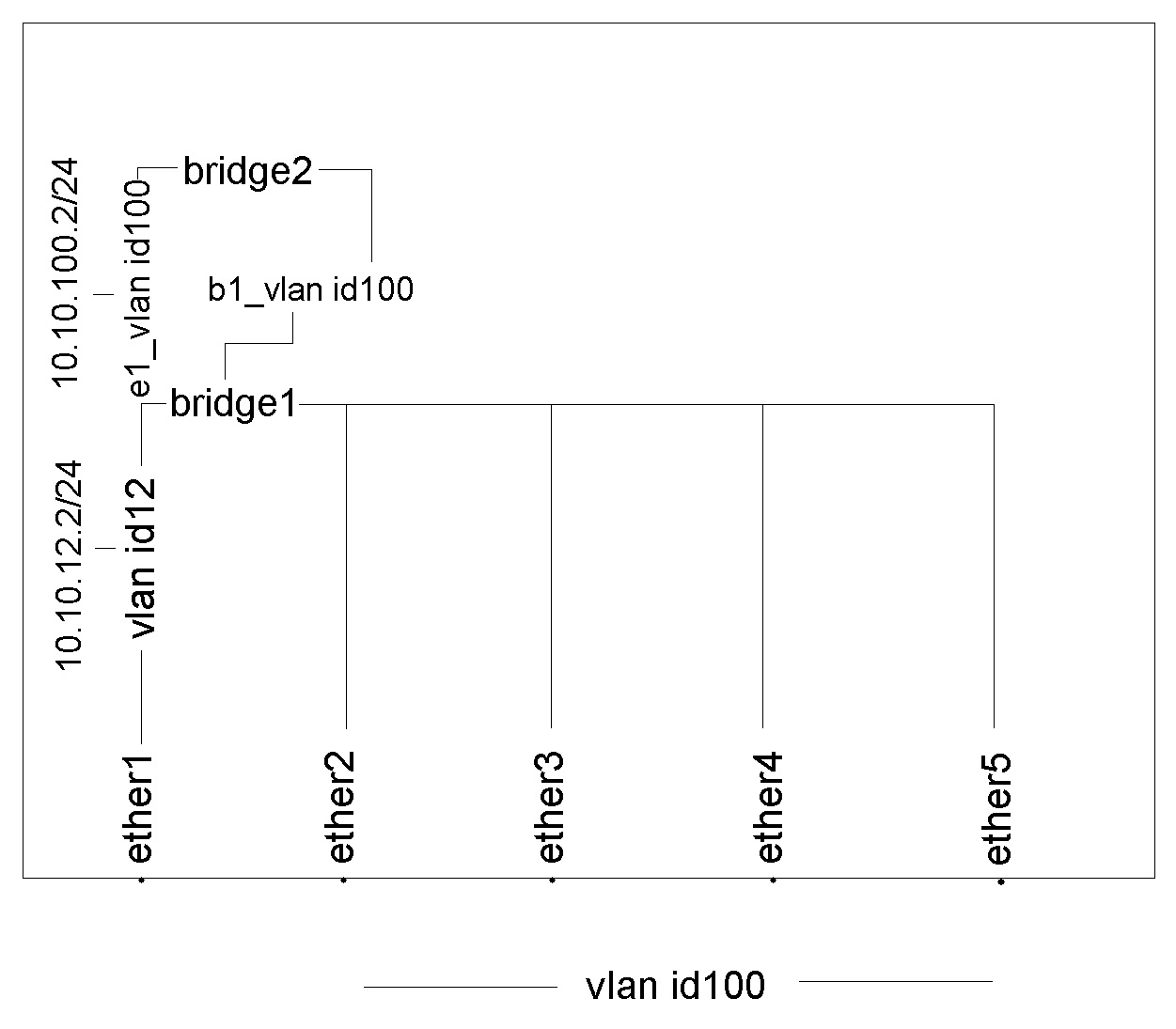 SashaGub Posted February 14, 2013 Author Posted February 14, 2013 По второму вопросу сам себе и отвечаю нашел Saab95 ответ на форуме и применил для себя вот такой рисунок получился. Соответственно и действия: На Ether1 создаем vlan12 и e1_vlan100 Создаем Bridge1 и в него vlan12 и Ether2, Ether3, Ether4, Ether5. На Bridge1 создаем b1_vlan100 Создаем Bridge2 и в него e1_vlan100 и b1_vlan100. На вопрос первый ответа пока не нашел. Как кинуть vlan100 во все порты (LAN)? Вставить ник Quote