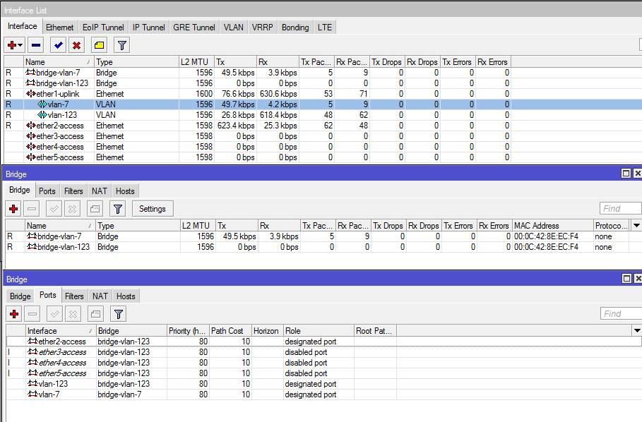 -Pave1- Posted October 30, 2012 Posted October 30, 2012 (edited) У меня для баловства валяется RB751G - я долго с бубном плясал, но dot1q ни в какую не захотел работать. Натыкался на темы, где писали, что используемый гигабитный чип не умеет. Хотя на сайте производтеля чипа в спецификации dot1q указан. При это писали, что у обычного не гигабитного 750 - все с этим хорошо. Я забил в итоге. Может у автора тоже гигабитная модель? У кого-бниудь на 750G/751G получалось вообще поднять dot1q? PS Натстройка dot1q в microtik жутко мутная и не удобная. Как такое только можно было придумать... Edited October 30, 2012 by -Pave1- Вставить ник Quote
