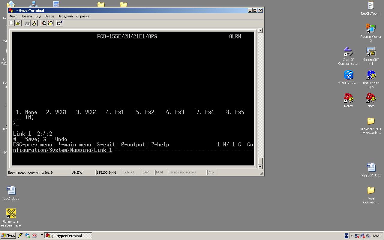 aman-pvl Posted November 18, 2012 Posted November 18, 2012 (edited) Здравствуйте коллеги!!! Такой вопрос!! С настройкой мультиплексоров не сталкивался, но представляю теоретический, надо включить физические порты, указать какие потоки будут проходить через них. Перед до мной mux RAD FCD 155 21E1, необходимо настроить потоки E1 и Ethernet порты 1,2. я на него залогинился, включил физические порты. При выборе Configuration-Virtual port-VCAT, там отображено VCG1, VCG2, VCG3, VCG4, VCG1 и VCG4 включены по умолчанию, а когда пытаюсь включить VCG2, VCG3 то при сохранении выдает ошибку. Как выбрать соотвествие VCG к Ethernet порту?? или оно автоматический?? Не могли бы объяснить, что надо делать?? Mux к сети не подключен, может быть на него надо подать потоки и подключить к оконечному оборудованию?? Заранее спасибо всем!! Буду благодарен!!! P.S. два скрина на 1 mapping нового mux, на 2 mapping задействованного. [ Edited November 18, 2012 by aman-pvl Вставить ник Quote
