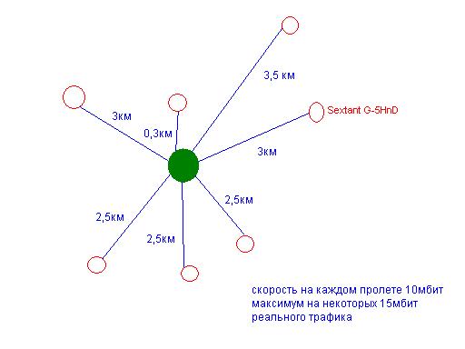 SSD Posted January 23, 2013 Posted January 23, 2013 Задача построить мосты на 5 ггц(см.схему). По краям планирую купить Sextant G-5HnD. Требования: по 10 мбит реального трафика в одну сторону(максимум на одном двух пролетах 15-20 мбит) и 2-3 мбит в обратную сторону на каждый пролет. Вопрос какую антенну(ы) установить в центре? Нужно несколько баз, если по паре точек будут в зуком углу хватит sextant как базы. Вставить ник Quote