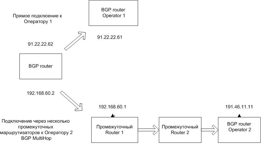 pred1981 Posted March 21, 2013 Author Posted March 21, 2013 В этом разделе все такие. Максимум могут сказать - используй Микротик это круто, но у вас уже самый крутой миротик, поэтому советы кончились. Если вы подняли BGP сессию, то по ней всегда должен бегать какой то трафик. Если трафика нет совсем, то это означает неправильну настройку. У Вас по мультихоп соеинению идет трафик или нет? Все маршруты которые принимает BGP с обоих сторон должны быть продублированны внутренними маршрутами - статикй или OSPF. В общем случае это достаточно сложная тема чтобы просто объяснить на пальцах особенно с 4 подлключениями. Вам нужно начать со схемы связи где кружочками должны быть нариосованы все маршрутизаторы со всми IP сетями и автономныи системами. Даже если вы привлечете специалиста, ему эта схема будет нужна. BGP предназначен для работы на границе автономных систем, замените мультихоп линки VLANами, представьте что нет такой опции и все. Дело в том что нет возможности прокинуть VLAN, поэтому используем MULTIHOP. А по поводу неправильной настройки BGP, я с Вами не согласен. Если выключить остальные сессии и оставить только одну с MULTIHOP, то все прекрасно работает, если бы было неправильно настроено, то вообще бы не работало. Проблема том чтобы заставить бегать траф по обоим операторам одновременно с MULTIHOP и без него. Вставить ник Quote