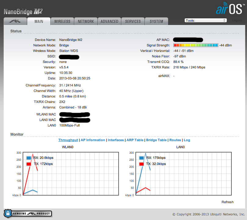 drstavras Posted March 20, 2013 Posted March 20, 2013 Имеется БС: AirMax Sector 2G-16-90 Клиент: UBIQUITI NanoBridge M2 + NanoStation M2 Loco + AirGrid M2 роутер: Ubiquiti AirRouter пинг 1-3 мс если что то качается то растет 50- 110мс. скорость на роутере (интернета) 100mb а с NB до БС доходит только 25 максимум 40mb мерею родной утелитой UBIQUITI выдает - 80 на 70mb иногда 90 на 90mb. клиентов всего 10 (скорость инета не режется, за исключением отдачи, выставлено 1mb.) все настроено BRIDGE, от БС до NanoBridge M2 всего 1.1км скорость постоянно скачет от БС стабильно 270 (300) от NanoBridge M2 скачет 240 - 40 фото http://img.fotki.yandex.ru/get/4117/9873409.9a/2_Nbgtp+kQ50v7BQzs3CUZZLtjF7Y=_937ba_5723a2bd_orig помогите отстроить оборудование. Вставить ник Quote