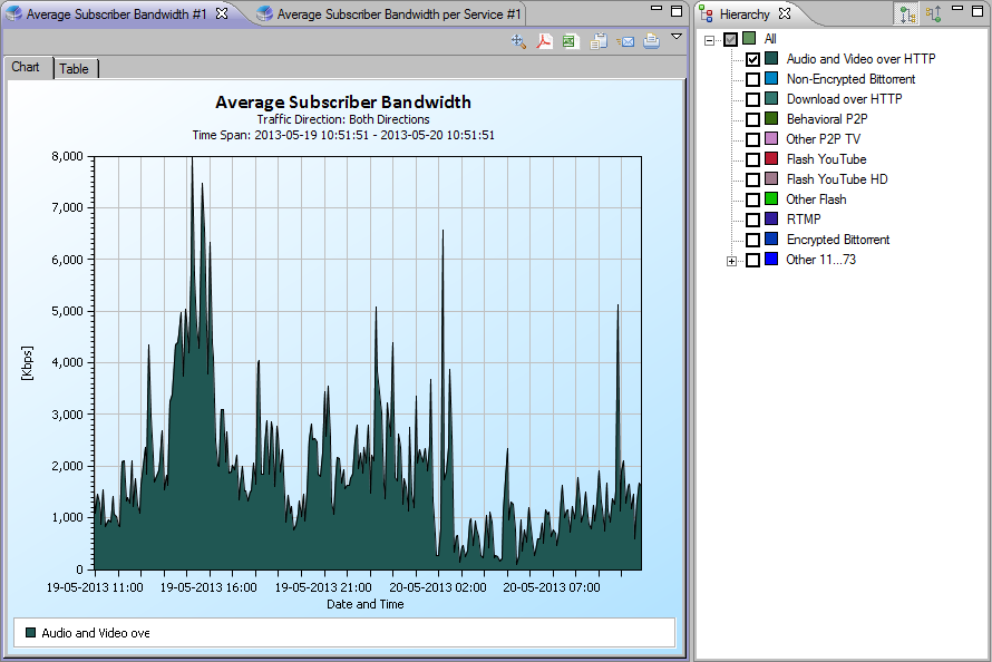 IVB Posted May 20, 2013 По предыдущемей проблеме все работает - все обнаруженные сабскрайберы добавляются с нужной галочкой. Теперь нужна помощь в другом месте. Запускаю Average Subscriber Bandwidth, оставляю галочку только на одном типе трафика (чтобы цвета не угадывать) - вижу нормальный график (03.png) Хочу посмотреть Average Subscriber Bandwidth per Service, для чего в следующем отчете выбираю соответствующий сервис (Audio and Video over HTTP - тот же, который мы наблюдали на предыдущем графике). Должны, по идее, получить картинку, схожую с предыдущей. Но получаем пустой график (04.png) Видимо, где-то что-то еще прописать нужно. Share this post Link to post Share on other sites More sharing options...