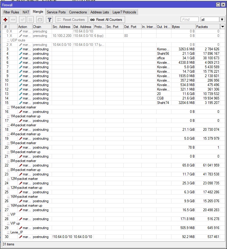 AKim Posted July 22, 2013 Author Posted July 22, 2013 Железо тут не при чем, с вашей нагрузкой и 1 ядра достаточно с любой гигабитной сетевухой за 300р. Ищите проблему в сети, например глючные порты на коммутаторах, глючные абонентские роутеры. Естественно нужно проверить и коммутаторы на предмет не правильно настроенных вланов, бывает по ошибке один и тот же влан на 2 интерфейса пропишут, и получается 1 порт верный, а второй сразу в 2 влана заворачивается. Вланы проверил. Ошибок нет. Буду влан разгребать из 240 человек, раскинутый по городу, а там видно станет. Одноядерный процессор справится, если брать в расчёт, что будет загружен постоянно до 60-70%. У нас расширение на днях до 300 мбит, каждый день растёт абон. база и т.д. Если ставить 6 ядерный процессор, то с запасом, а не как на картинке. А это ведь всего 200 мегабит и немножко правил в фаерволе с простой маршрутизацией. Вероятно, вы переросли микротырк. Я пока что в него верю. Вставить ник Quote
