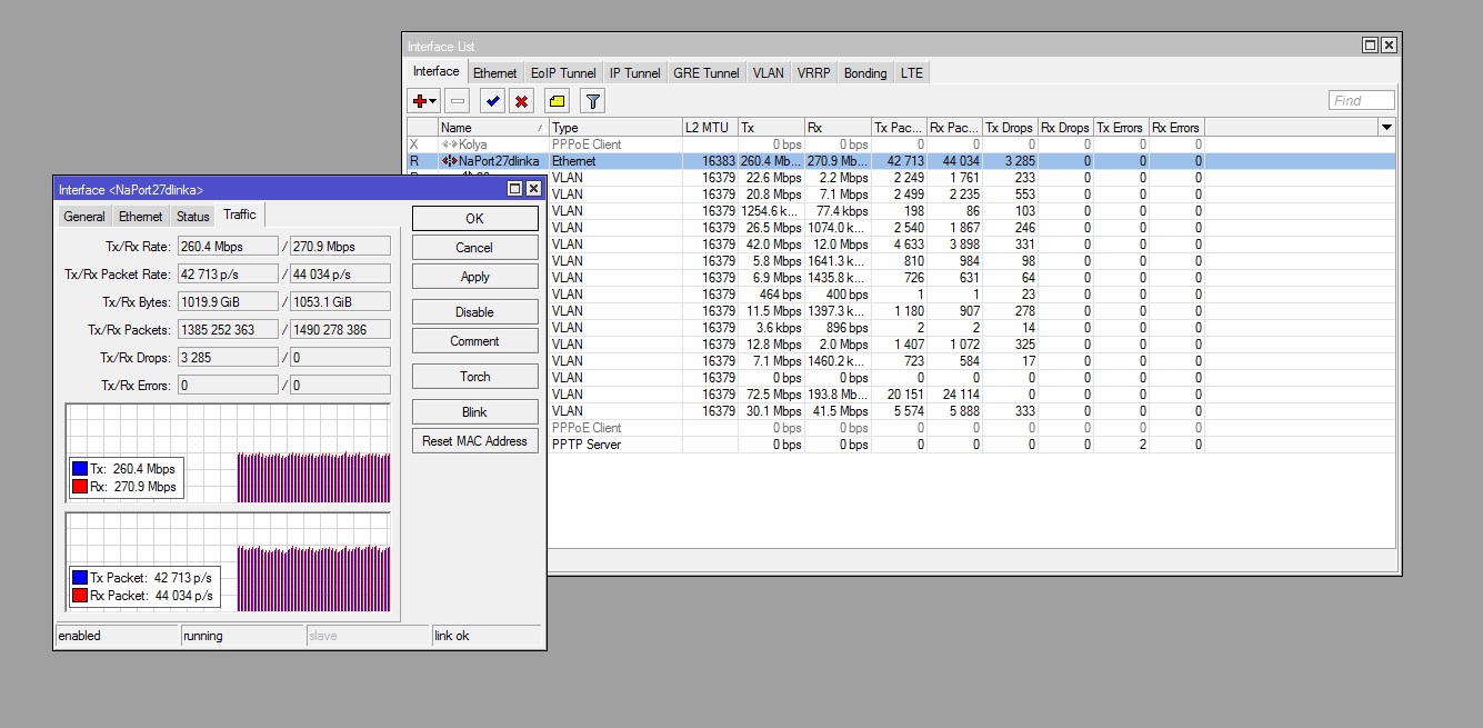 telecom Posted July 23, 2013 Posted July 23, 2013 Была похожая проблема, точь в точь)))) Железо тут не при чем, с вашей нагрузкой и 1 ядра достаточно с любой гигабитной сетевухой за 300р. Согласен полностью. Мы что только не делали с железом, ставили дорогущие Интеловые сервера, ничего не помогало. Ищите проблему в сети, например глючные порты на коммутаторах, глючные абонентские роутеры. Можно конечно, и по этому пути пойти, но клиенты разбегутся, пока вы будете очередной глюк в сети отлавливать (а они будут неизбежно). А можно пойти по нашему пути, заменили Микротик на CentOS, настроили все и уже два года молотит без проблем на том же железе! Вероятно, вы переросли микротырк. Согласен полностью. Есть у него какой-то невидимый предел, после которого все его плюшки становятся ничтожными по сравнению с непонятными и ничем не обоснованными глюками. Вставить ник Quote