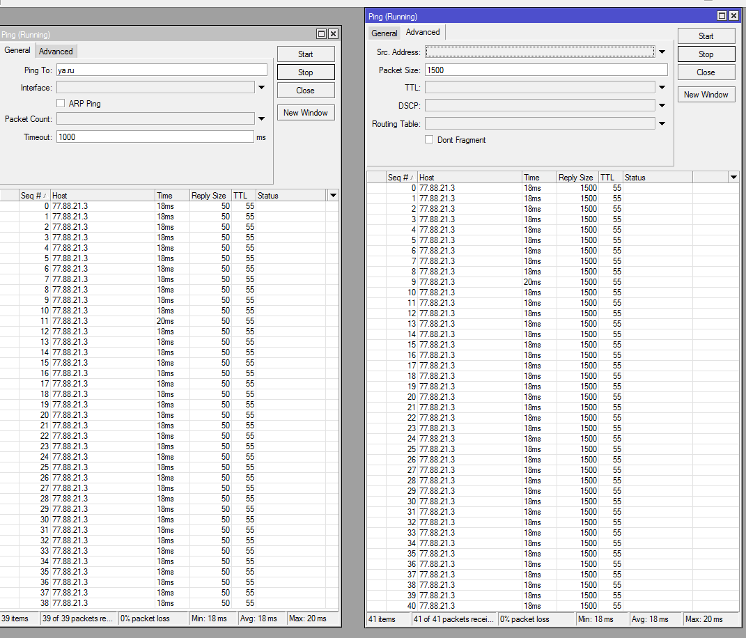 haverlinkfor Posted July 29, 2013 Author Posted July 29, 2013 Во-первых, сам себя он короткими пакетами тоже пингует с потерями? Во-вторых, почему Вам так важны именно короткие пакеты? Сам себя пингует без потерь. Да, действительно, интернет работает при этом хорошо, но, хотелось бы разобраться, и для себя, и клиенты, которые пускают пинг в винде по 32 байта, видят не приятную картину для себя. Для наглядности Прикрепленные изображения И правда странно, обычно все наоброт. Может проблема не в микротике, а в том, что стоит после него? Может, может в хабе, хотя их в сети множество, и пингуя через любой, такая же ситуация. А клиенты случайно не по радио на наносах, судя по такой изменчивой задержке? Попробуйте что-то в интернете попинговать. По радио, на бриджах, На изображении пинг в интернет. Без потерь. Вставить ник Quote