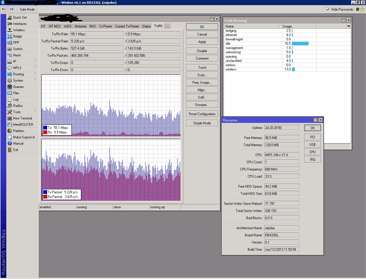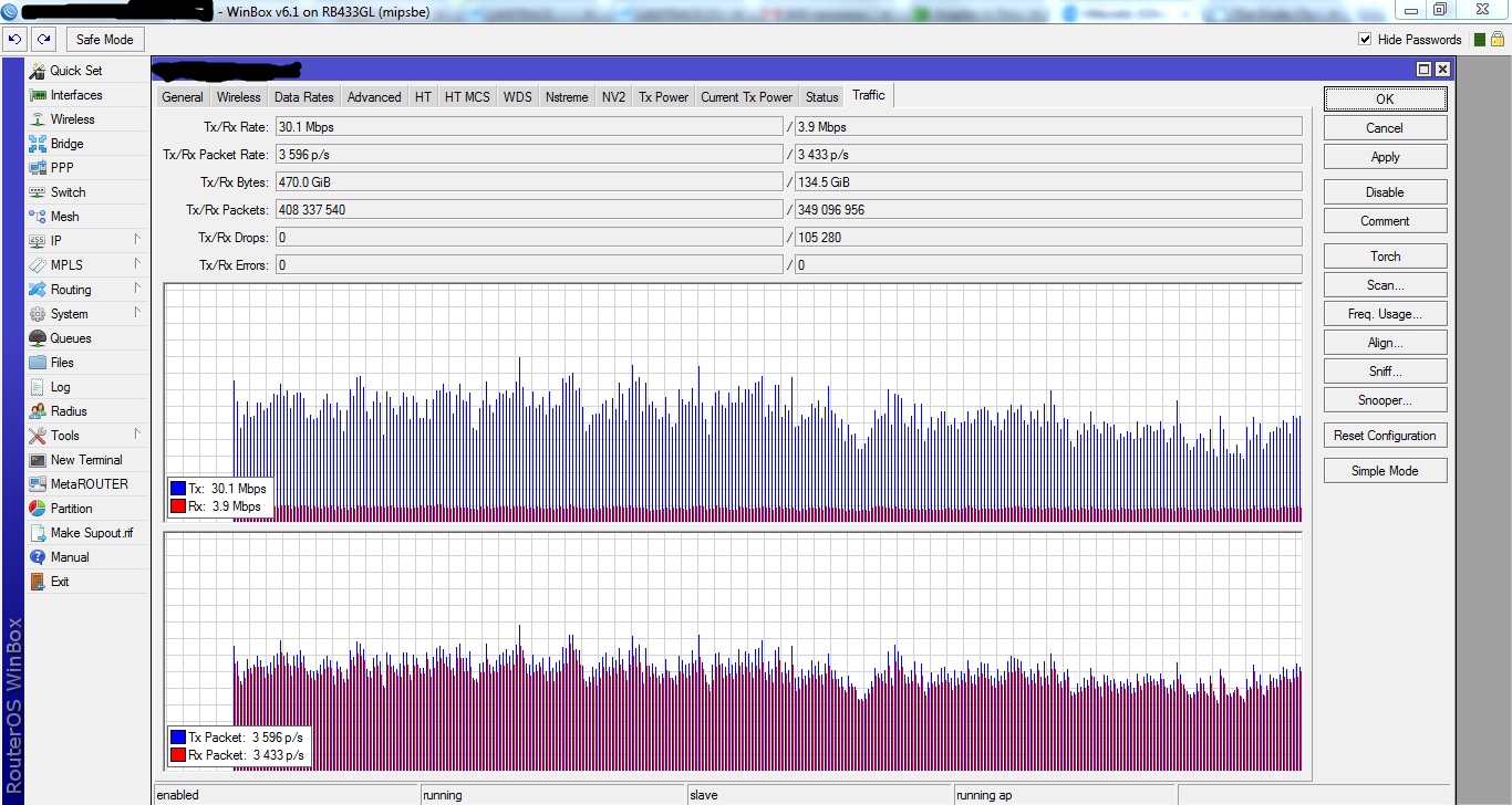 Yaten Posted August 2, 2013 Posted August 2, 2013 убили CPU чем то. смотри tool>profile Так же попробуй перейти на модуляцию ниже и посмотри что будет. если cpu не в полку, то параллельно с абонентским трафиком пусти тест, с целью выяснения поднимется трафик на интерфейсе или нет. Вставить ник Quote