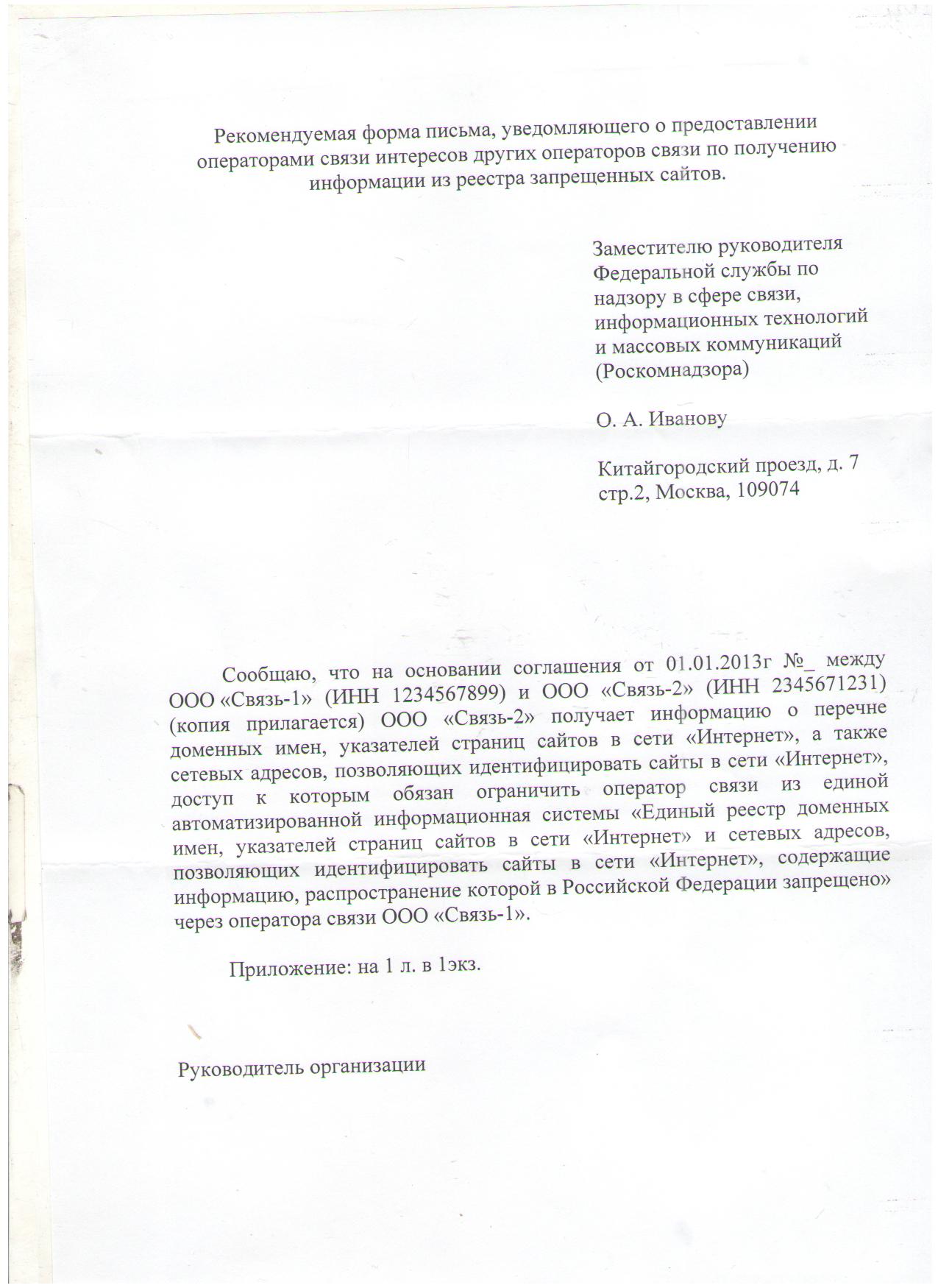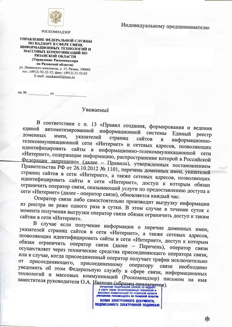 sheft Posted September 6, 2013 Posted September 6, 2013 Надзоровцы сказали, что такое бывает, но отксерить ничего естественно не дают :) Может это поможет ;) В таком договоре РКН считает, что достаточно соглашения сторон К соглашению требований не увидел... Приложение 1 выложите К сожалению у меня его нет, думаю простое соглашение сторон должно быть достаточно. а это и есть приложение к письму, само письмо: есть кстати помимо скриптов и прога под вин/линь - Register110 Вставить ник Quote
