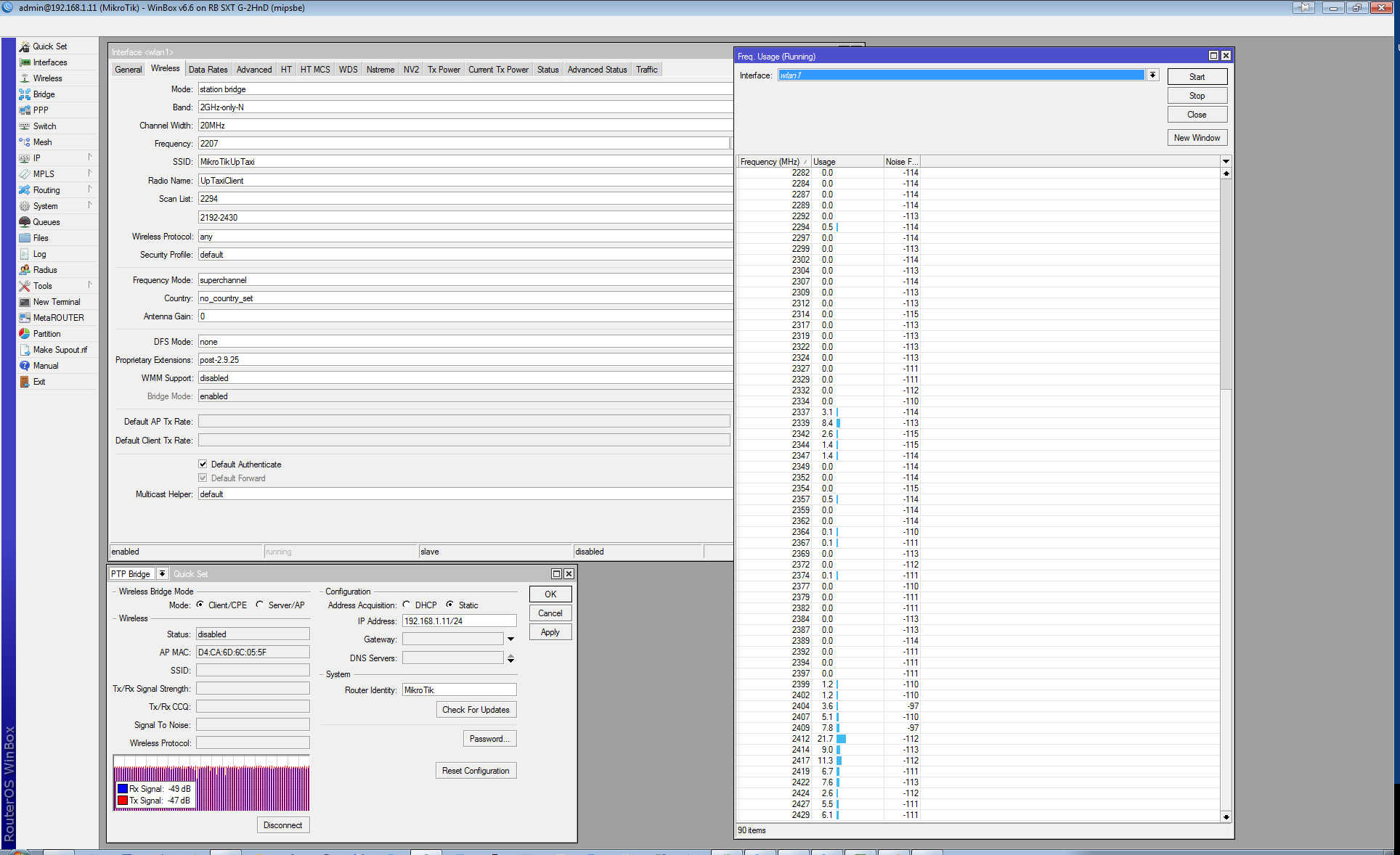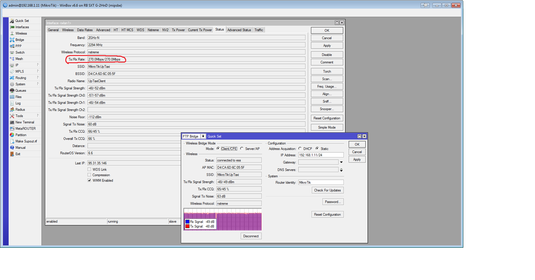 kkv Posted November 29, 2013 Posted November 29, 2013 купил два sxt g-2hnd расстояние 350м. сигнал хороший. один стоит на 12 этаже жилого дома, второй на 3-м офисного здания в непосредственной близости к офису есть дорога с движением средней интенсивности (машины помехи создают?) на высоких частотах около 2700 отваливается почти каждую секунду (отвалится, подключится, отвалится, подключится) чем ниже частота, тем стабильнее держит связь... но на самой низкой частоте 2192-2207 вообще не видит базу. начинает видеть на 2212 сейчас выбрал частоту наобум 2294 скан лист одна единственная частота 2294 tx power на базе 12, на клиенте 17 скорость бывает дотягивает до 270Mbps (первый скрин), но в основном скачет постоянно от 1 до 270-ти и всё равно периодически отваливается. (раз в 1-3 минуты) а бывает отвалится и подключиться несколько секунд не может вот видео, о том как отваливается http://www.youtube.com/watch?v=qrF8rNQFFP0 куда копать? хелп!!! Вставить ник Quote