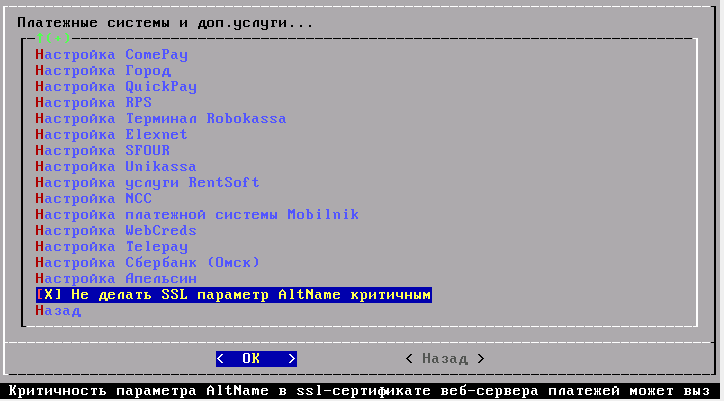 Saab95 Posted December 9, 2013 Author Posted December 9, 2013 Кто использует биллинг Ideco для приема платежей через киви, нужно в настройках платежных систем поставить галочку в самом низу - Не делать SSL параметр AltName критичным. И платежи снова заработают. Вставить ник Quote