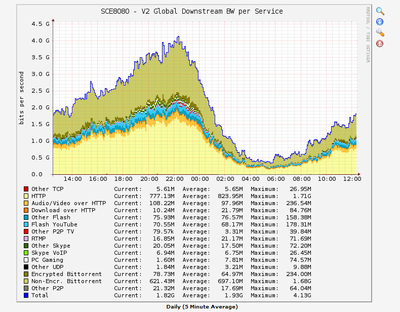 DimaM Posted December 12, 2013 Posted December 12, 2013 Пусть здесь будет (было под рукой) Общий трафик(вх+вых): Bittorrent 37.8% 96964 pps 630.2M bps http 19.5% 43359 pps 325.2M bps MPEG Video 15.4% 30091 pps 257.4M bps Flash Video 3.1% 6436 pps 51.5M bps Только входящий: http 18.4% 27357 pps 306.9M bps Bittorrent 17.9% 47506 pps 297.8M bps MPEG Video 15.0% 20403 pps 250.4M bps Flash Video 3.0% 4230 pps 49.6M bps Вставить ник Quote
