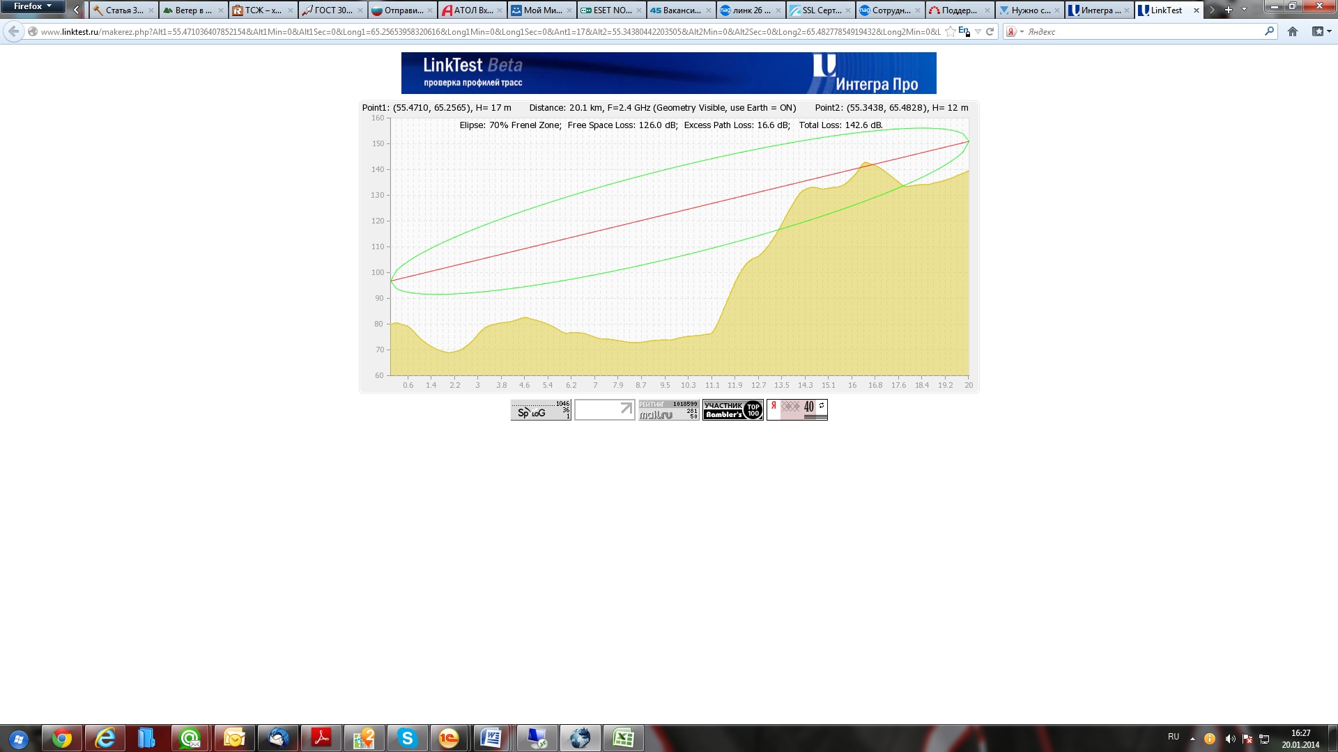 XerxeS Posted January 21, 2014 Posted January 21, 2014 На 16-м километре по профилю трассы ретранслятор, питание есть как подвести? В крайнем случае помудрить с солнечными батареями и аккумом. Правда тут все зависит от бюджета и необходимости, да еще от длины светового дня. ЖБ опору не настолько дорого установить, если там не лес, конечно. Или задрать оба конца на 10 метров. Кстати важный момент: вы расчет делали для 2.4ГГц, а этот диапазон принесет вам только расшатанные нервы и ненависть, лучше используйте 5ГГц Вставить ник Quote