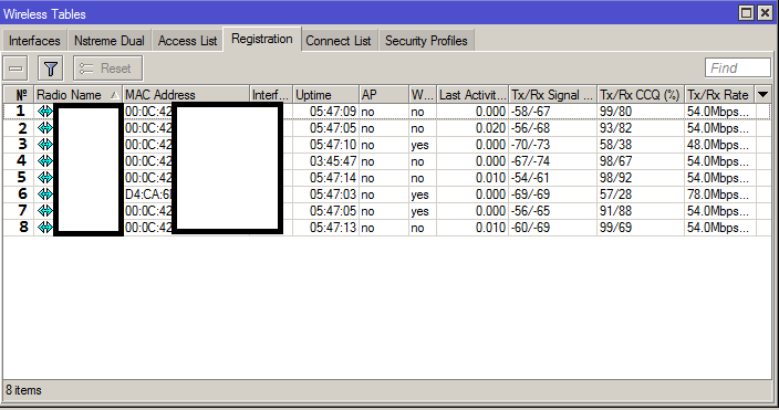 saaremaa Posted January 20, 2014 Posted January 20, 2014 Нужно начать с уменьшения выходной мощности, вместо Default поставьте all rates fixed = 18 может все-таки tx-power-mode=card-rates ибо как пишет сам Mikrotik Note that it is not recommended to use 'all-rates-fixed' mode as the wireless card tx-power for the higher data rates is lower and by forcing to use the fixed tx-power rates also for the higher data rates might results the same problems like in the previous question about tx-power setting. For most of the cases if you want to change the tx-power settings it is recommended to use the tx-power-mode=card-rates and it is recommended to lower and not to raise tx-power. Вставить ник Quote