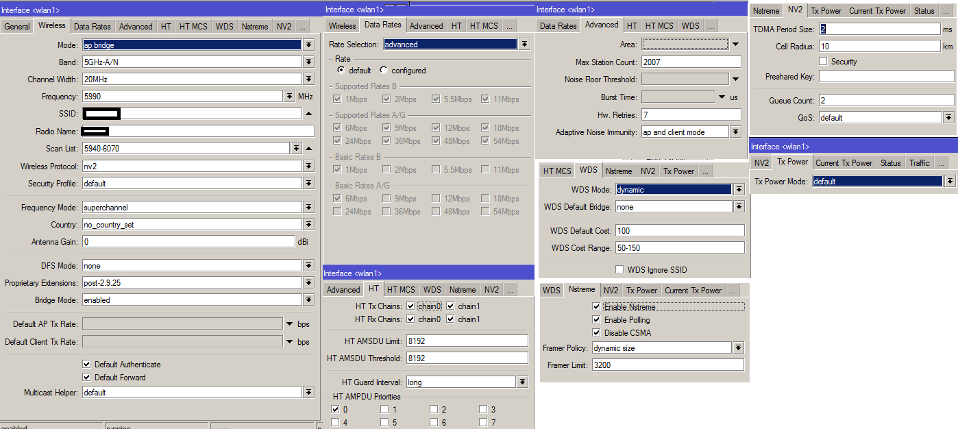 Saab95 Posted January 20, 2014 Posted January 20, 2014 Нужно начать с уменьшения выходной мощности, вместо Default поставьте all rates fixed = 18, так же уменьшите мощность и на клиентских устройствах. После чего проведите тесты, переключите режим работы в Nstreme и еще раз проведите тесты. После определите где быстрее. Вставить ник Quote
