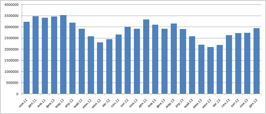 Дятел Posted January 21, 2014 Posted January 21, 2014 Телефония. Падение количества абонентов за год - 1.3% от общего числа, то есть число подключения равно числу расторжений. Сумма абонентской платы - ровная как стол за 2 года. Но внутренний, входящий в безлимитку, то есть бесплатный, трафик между абонентами падает в физическом выражении. Это суммарный трафик, но если убрать юриков, у которых объем трафика практически не меняется, то падение будет более заметным... Вставить ник Quote