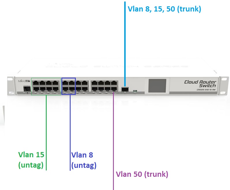 Akuny Posted January 24, 2014 Author Posted January 24, 2014 А вы номера портов не путаете? Те что на картинке у вас обведены 50 вланом будут совсем не ether1 и ether2=) Для теста была сброшена конфигурация и попытка пропустить транзитом trunk 50. Остальная конфигурация не вызывает проблем (сделано через Bridge), проблема именно транзите VLAN. Для теста пытаюсь пропустить через eth1 и eth2 транзитом vlan 50 (trunk). На CCR1036-12G-4S таким образом (через bridge) без проблем идет трафик транзитом. А на CRS125-24G-1S-RM - не идет. Вставить ник Quote