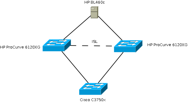 dr Tr0jan Posted January 29, 2014 Posted January 29, 2014 (edited) Взяли блейда HP C7000 с двумя ProCurve 6120XG. Возникла проблема с подключением к сети предприятия (две C3750X в стеке). 6120XG не умеет ни стек, ни Distributed Trunking Protocol. А сами лезвия хочется для фейловера подключить сразу к двум прокурвам. STP не можем использовать, т.к. очень долго сходится (на лезвиях будут крутиться сервисы критичные к потерям пакетов). Посоветуйте пожалуйста способы подключения. Edited January 29, 2014 by dr Tr0jan Вставить ник Quote